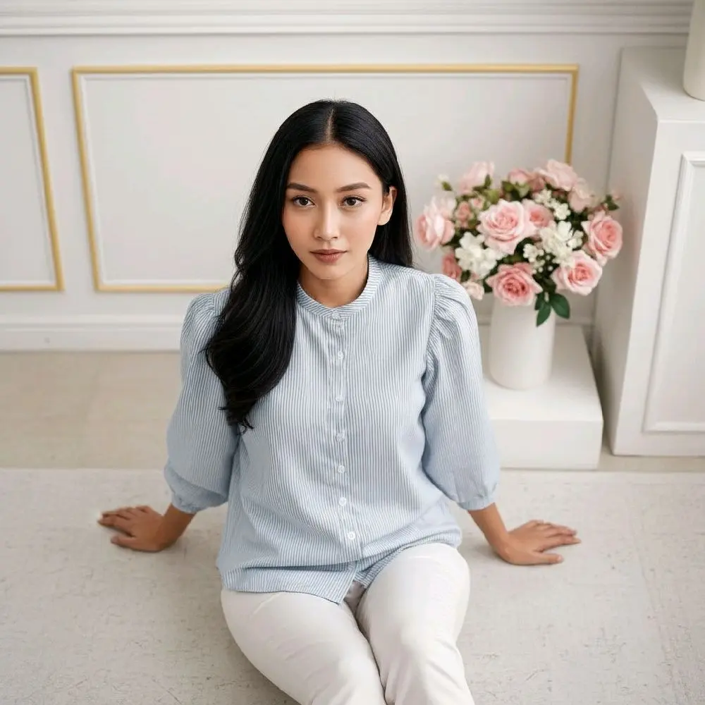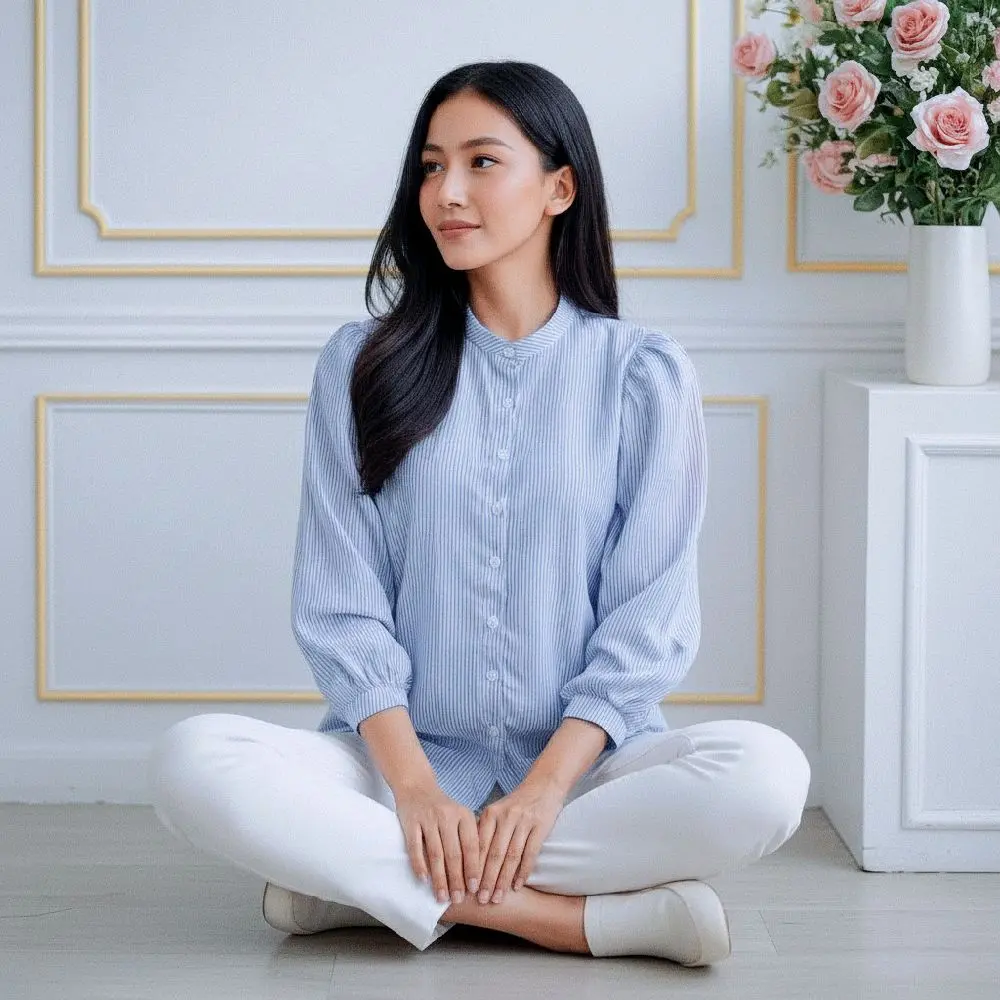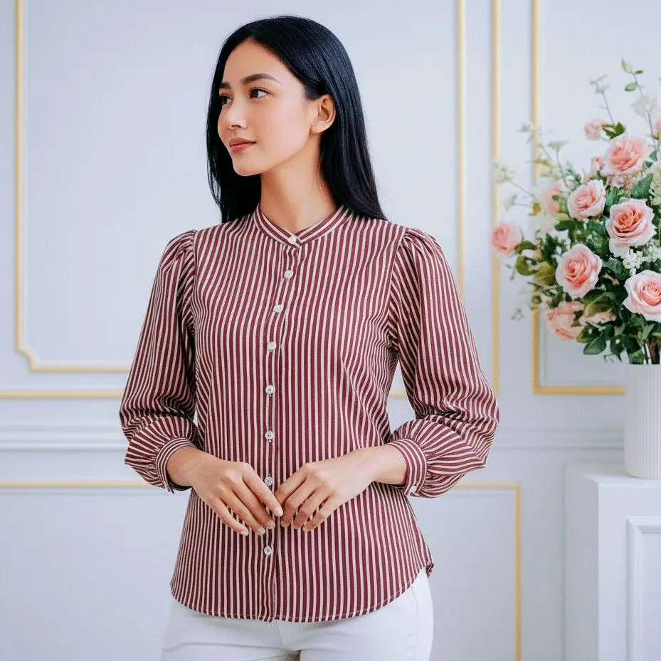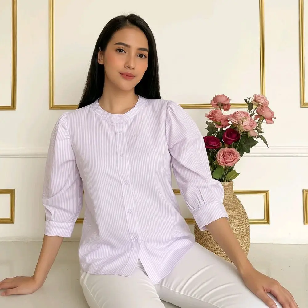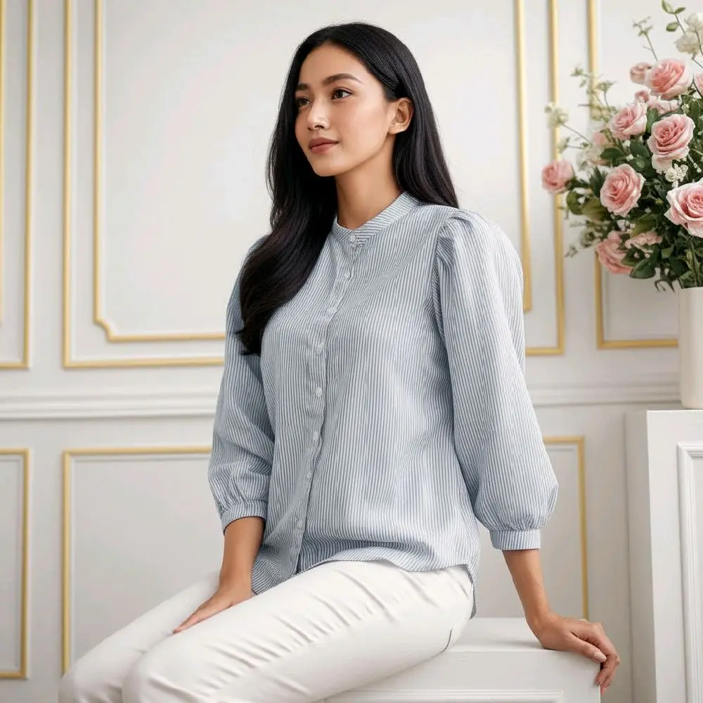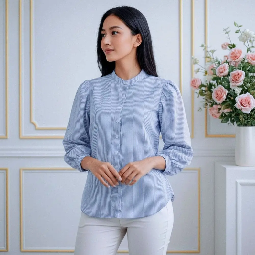 Perpaduan motif basic dan desain yang modern,model lengan Puffy/balon membuat penampilan terlihat semakin menarik