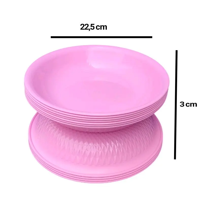 Paket hemat ini menyediakan 12 & 6 pcs piring makan dengan motif diamond. Piring plastik tebal ini cocok untuk dewasa dan anak-anak. Pilih paket ini untuk kebutuhan makan Anda. ๐