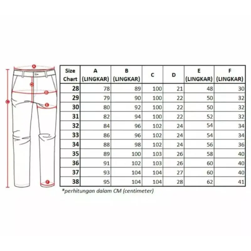 Size 28 = 78cm tinggi 100cm