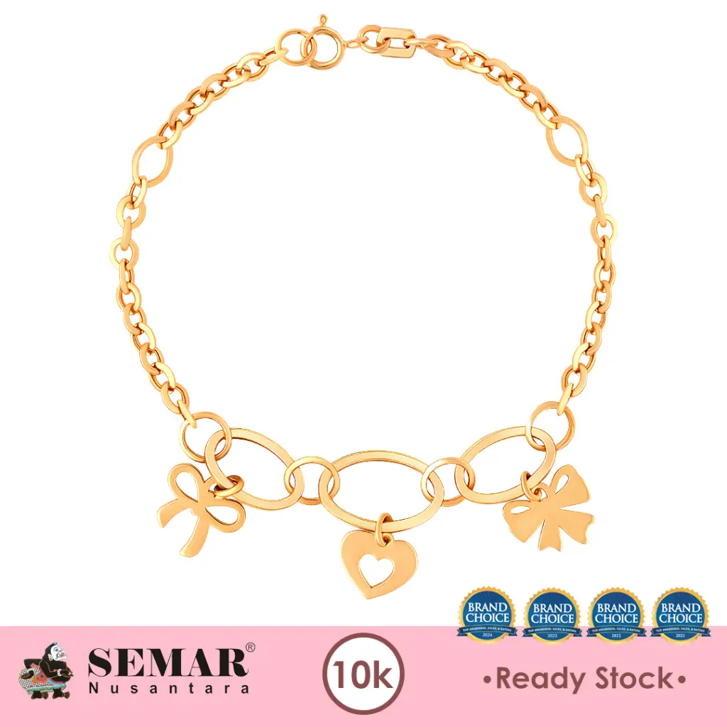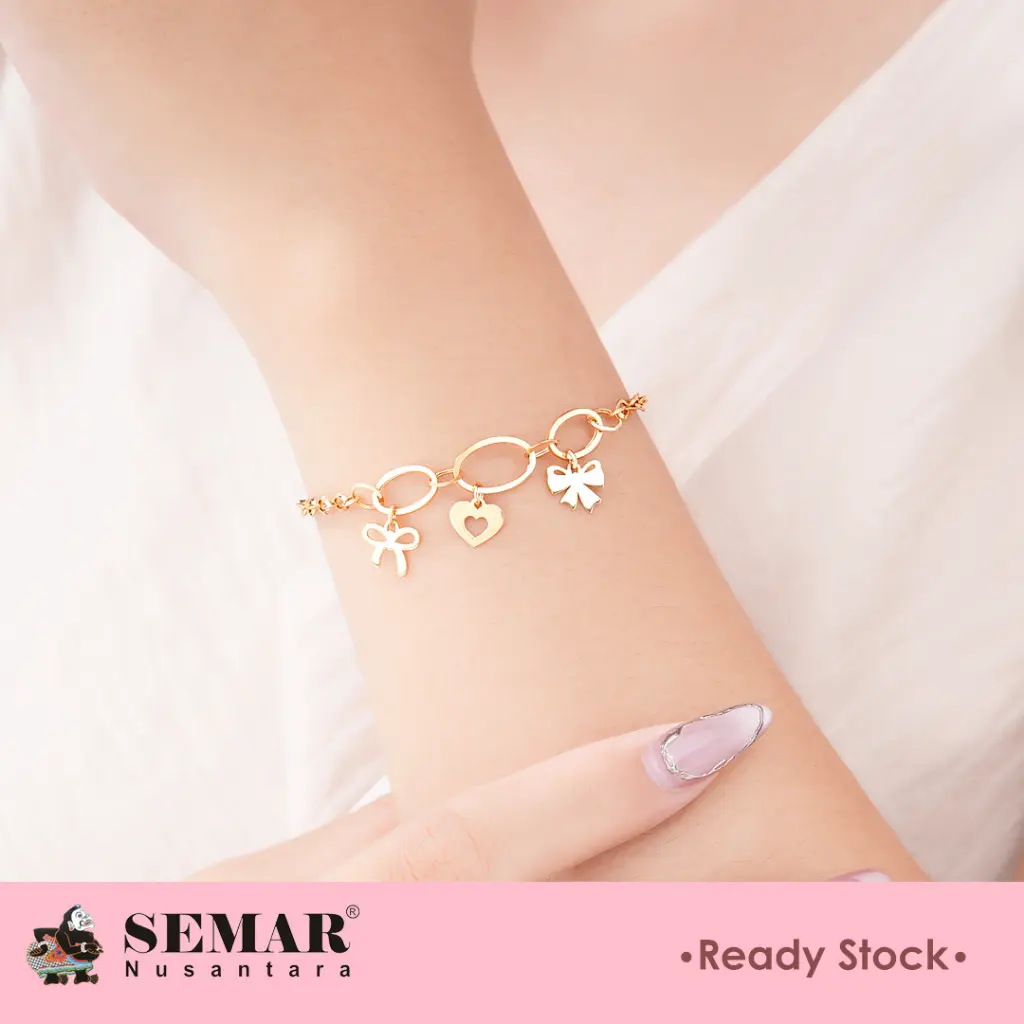 Gelang Emas Yuina Heart Coquette, Dengan desain charm pita yang lucu dan feminin. Cocok untuk hadiah ulang tahun, atau momen spesial lainnya.