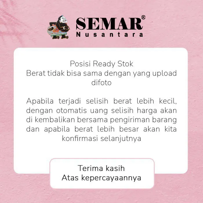 Bagi pemilik member Semar Nusantara, pada saat transaksi checkout mohon untuk langsung tulis nama dan no member pada kolom note pembeli agar transaksi bisa langsung kami proses.