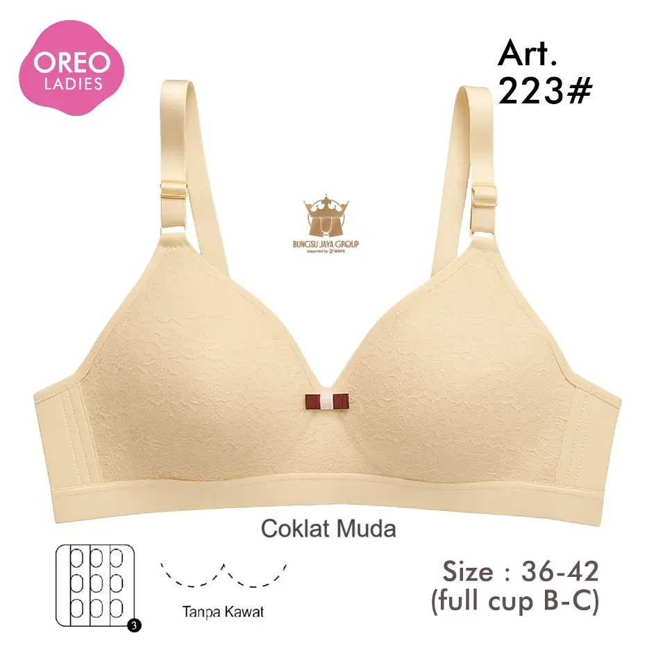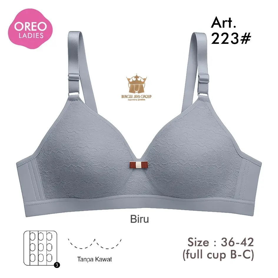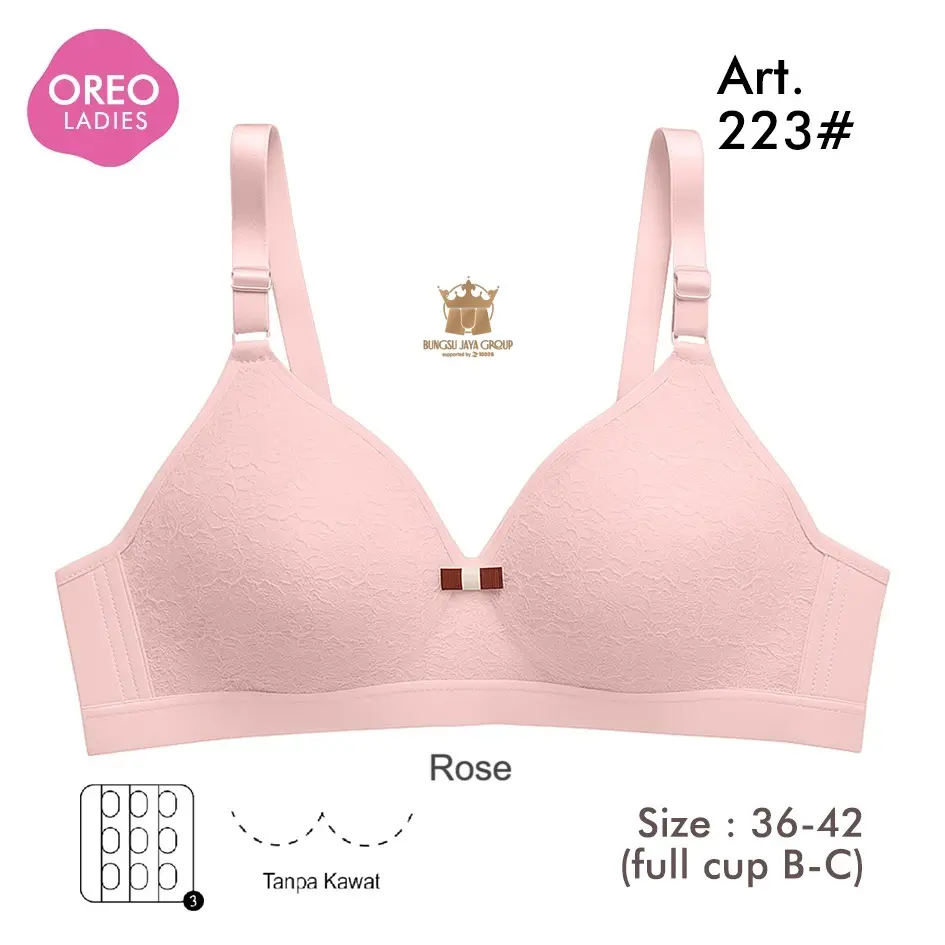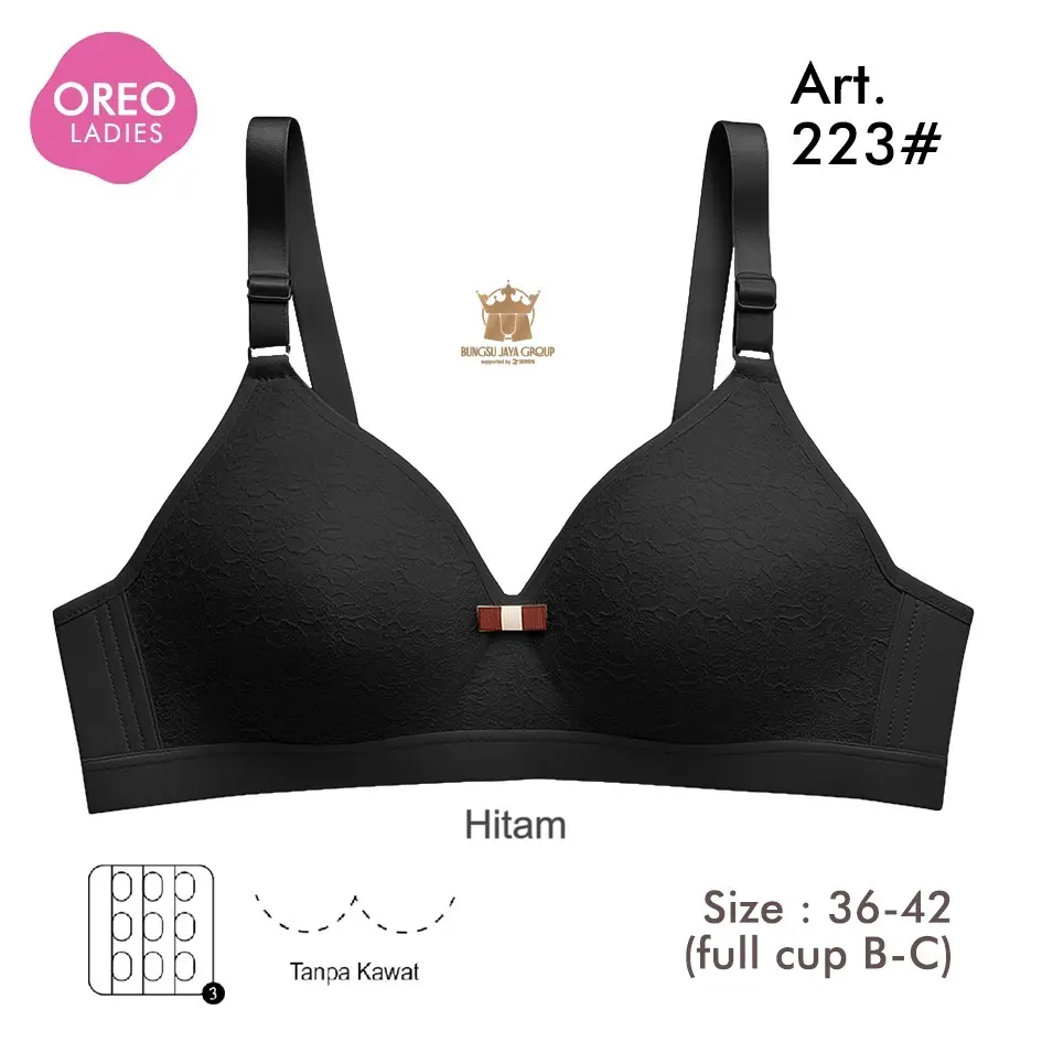 Bra Oreo Art 223 (promo 3pc) Bh Motif Renda Busa Sedang Tanpa Kawat Full Cup B-C Nilon Mix Lembut Nyaman Wanita Dewasa