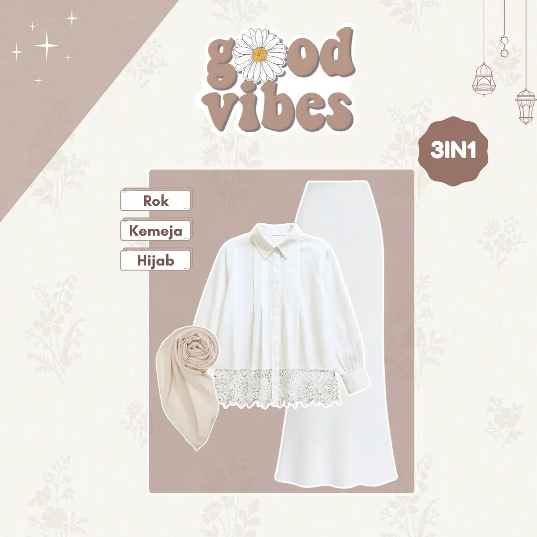 5. Setelan Hijab Wanita (Jemma Blouse + Rok Duyung + Bella Square) One Set Kondangan Baju Lebaran Remaja - LT246