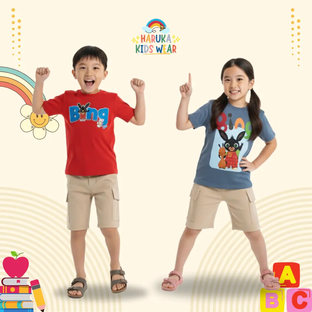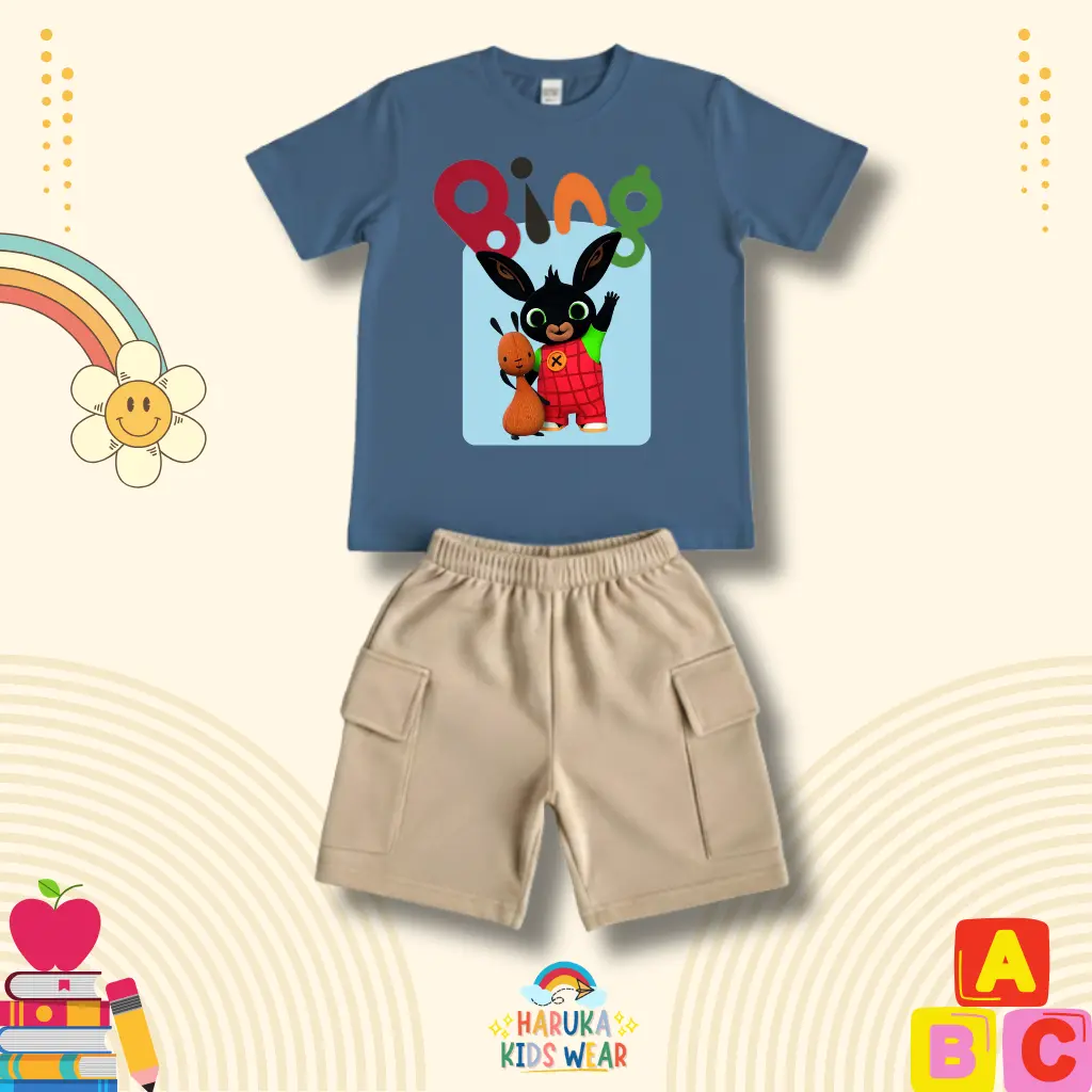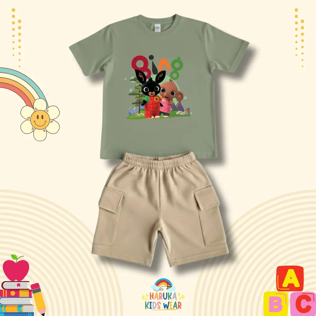 ✨ Setelan celana anak Haruka dengan motif gambar Bing. Cocok untuk anak usia 1-10 tahun. 🌟