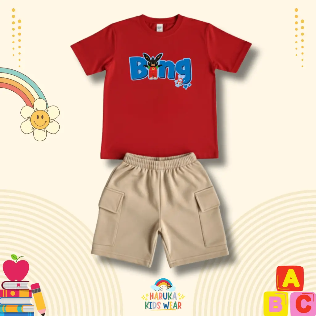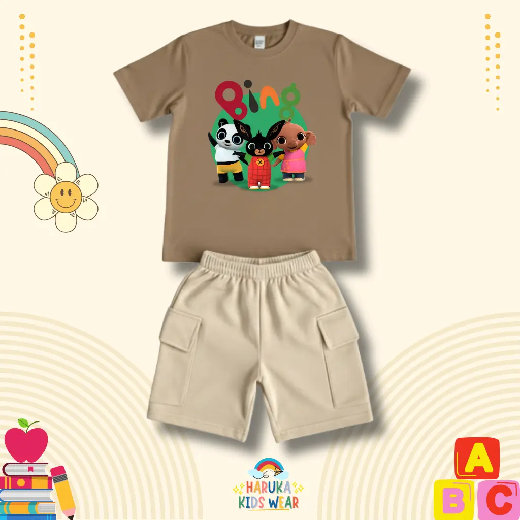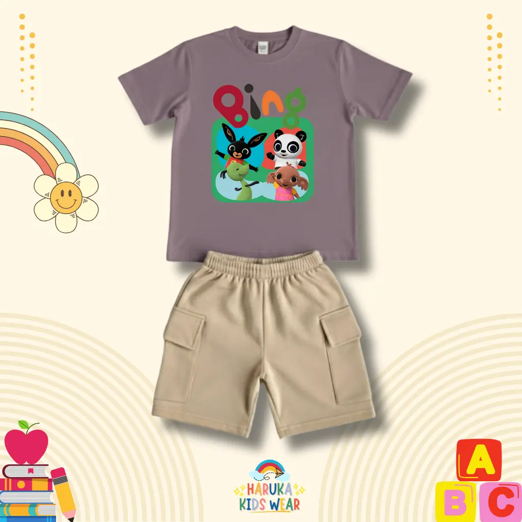 ✨ Setelan celana anak Haruka dengan motif gambar Bing. Cocok untuk anak usia 1-10 tahun. 🌟