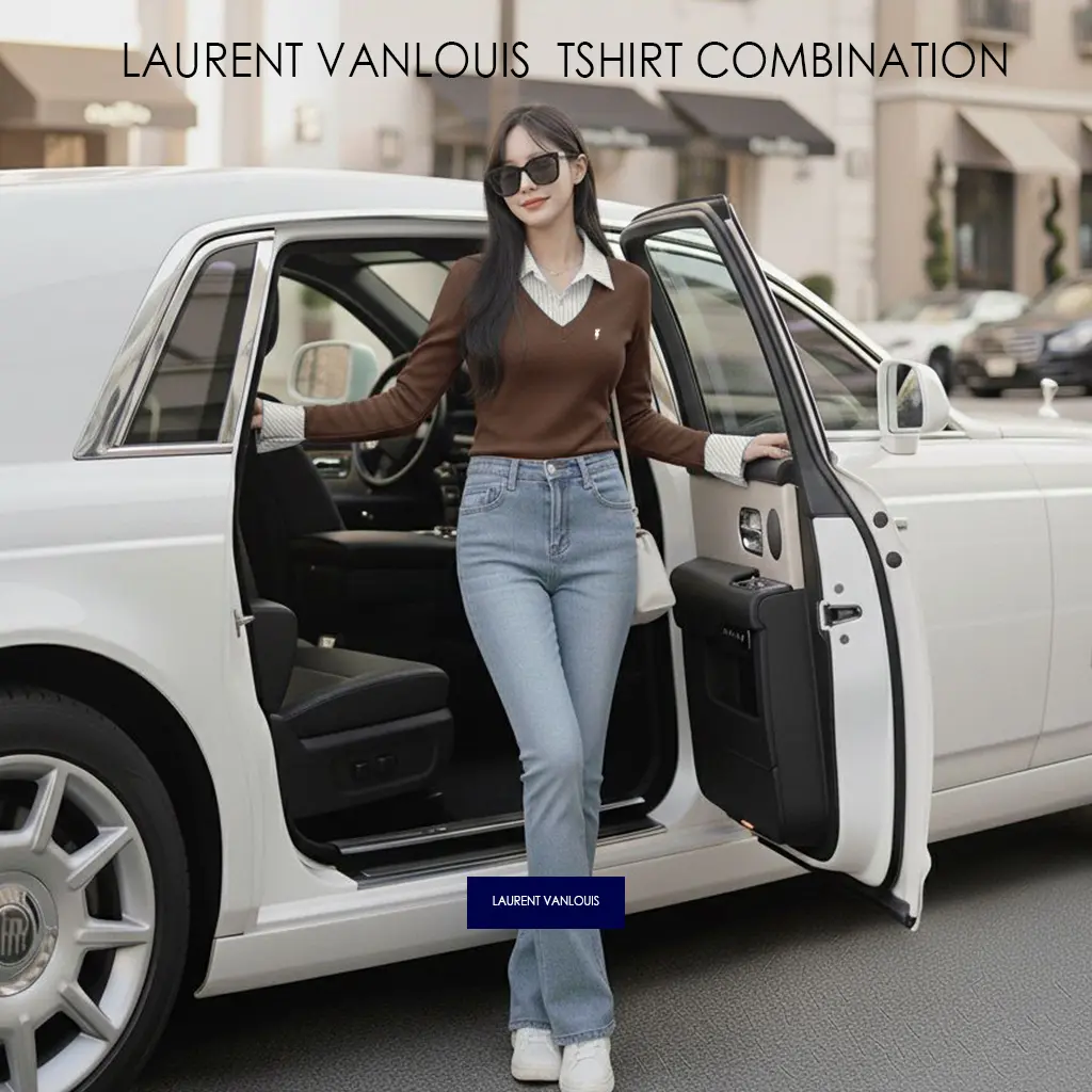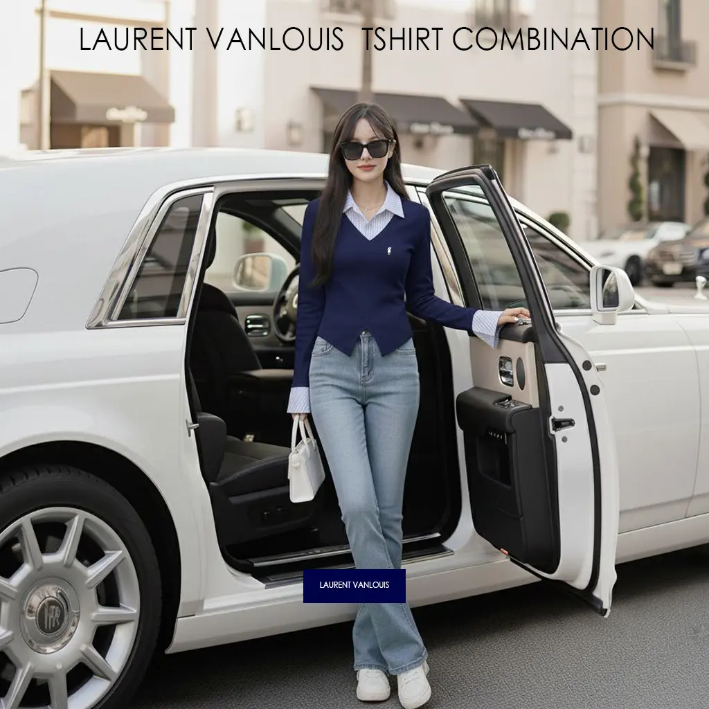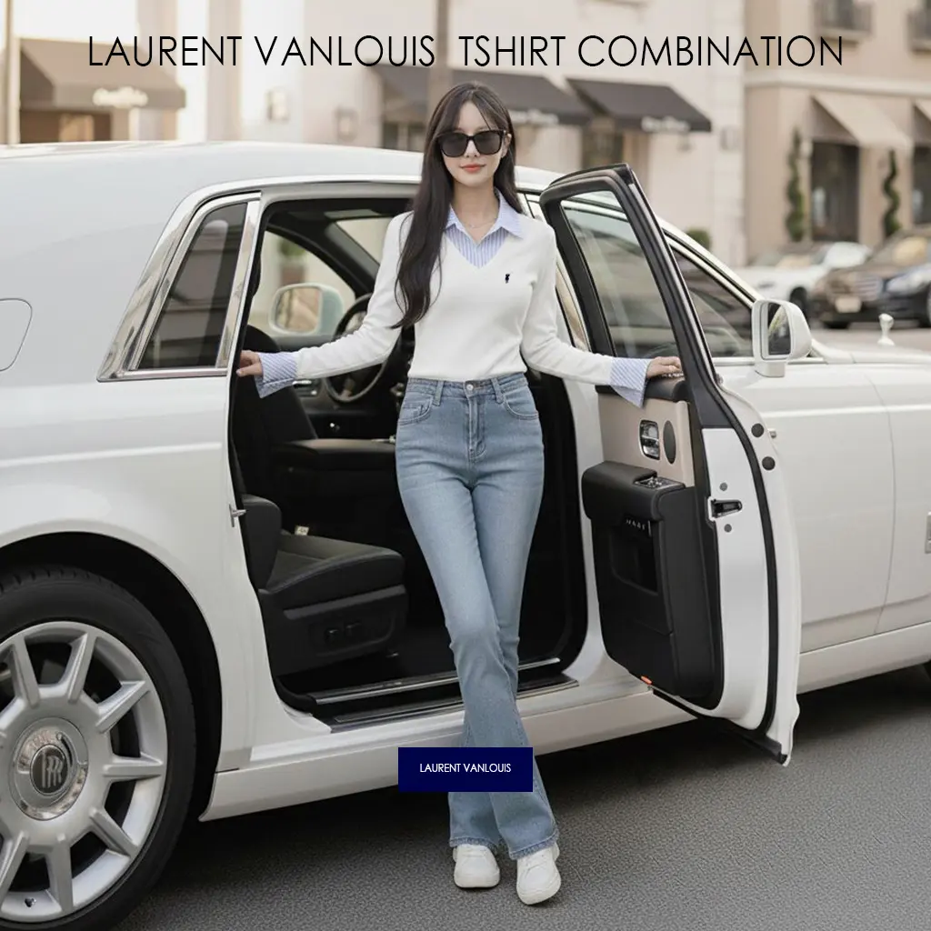 LAURENT VANLOUIS TSHIRT STRIPE COMBINATION BASIC ATASAN WANITA PREMIUM