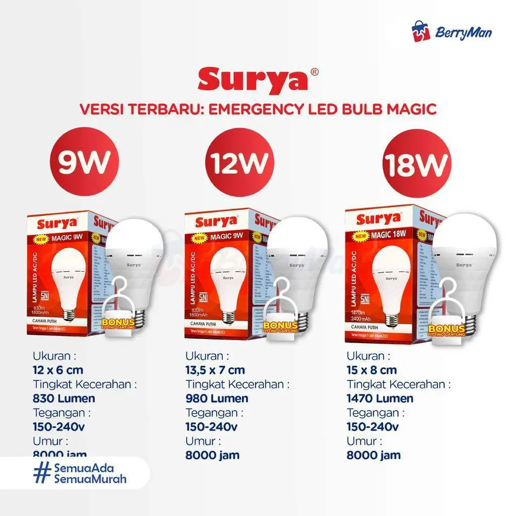 Keunggulan [Paket Hemat] Isi 3 Pcs Surya Magic II Lampu Bohlam Emergency 9W 12W 18W Cahaya Putih Auto Nyala