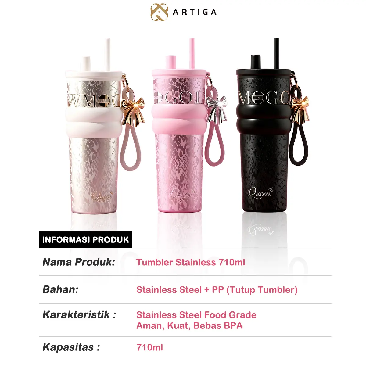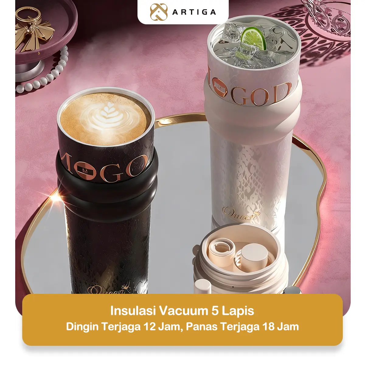 ARTIGA Tumbler Glamour 710ml adalah termos air stainless portable yang tahan panas dan dingin. Cocok untuk Anda yang membutuhkan minuman tetap segar kapan saja. Dilengkapi dengan free sedotan dan kotak hadiah elegan.