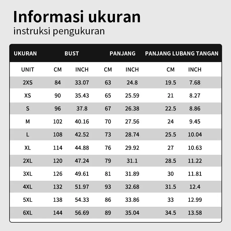 2. Ukuran berdasarkan berat badan hanya untuk referensi. Silakan lihat tabel ukuran untuk ukuran spesifik Anda.