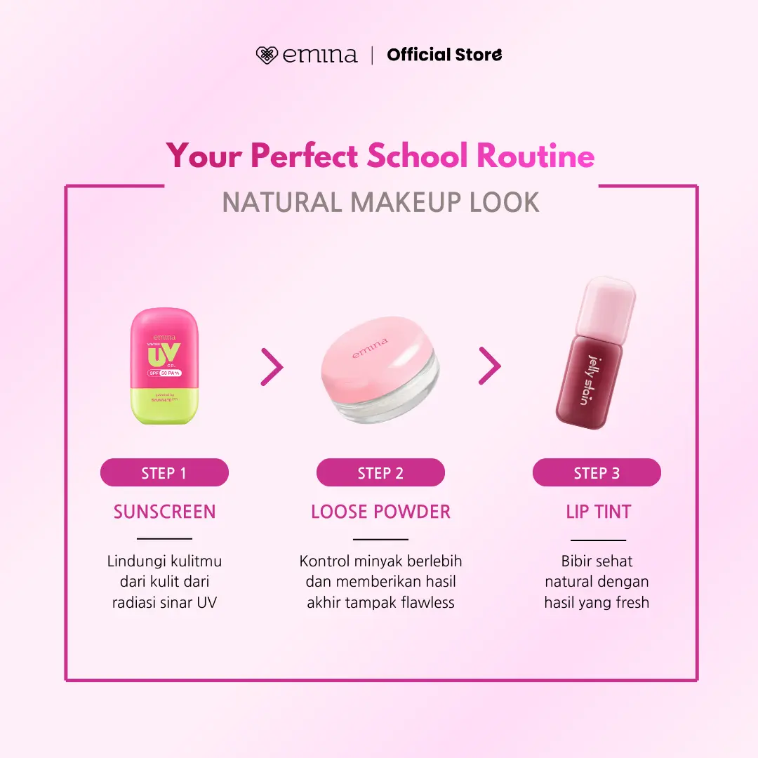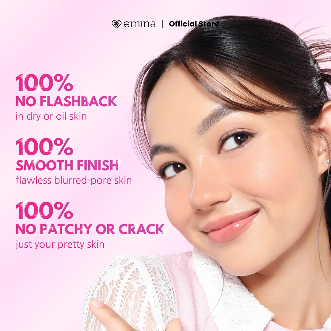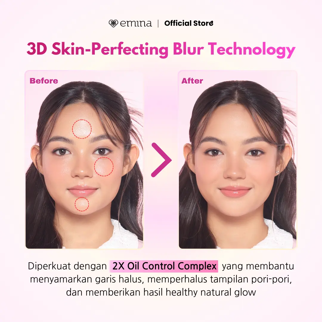 2.β β Untuk coverage lebih tinggi, gunakan Emina Daily Matte Cushion, Emina Matte Core Cushion atau Emina Glow Vibe Cushion sebelum menggunakan Emina GlowFixer Blur Powder.