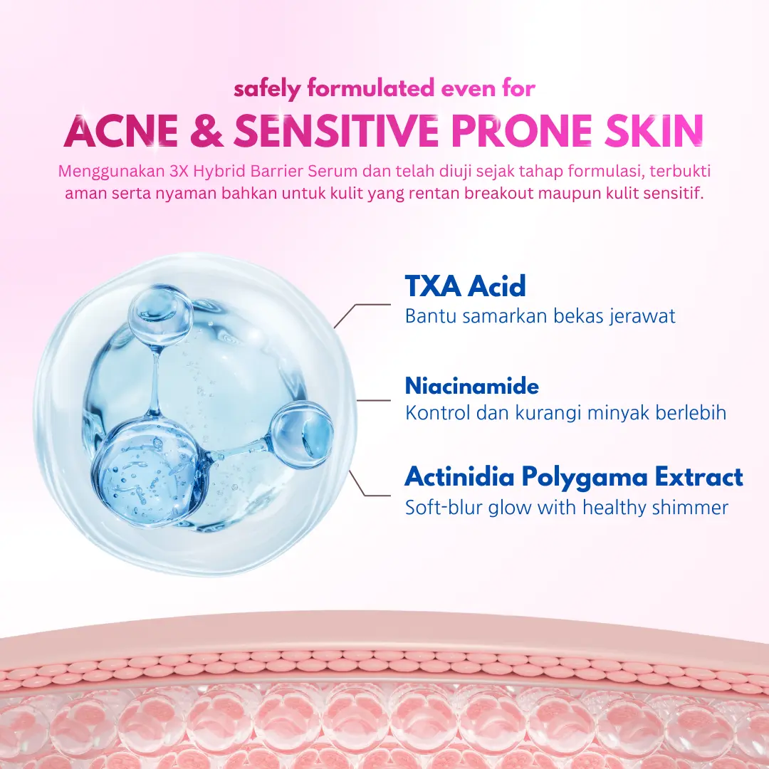 β’β β Mengandung 3x Hybrid Barrier Serum & Complexion: Kombinasi Swiss-grade Niacinamide untuk mengontrol sebum dan menjaga hidrasi