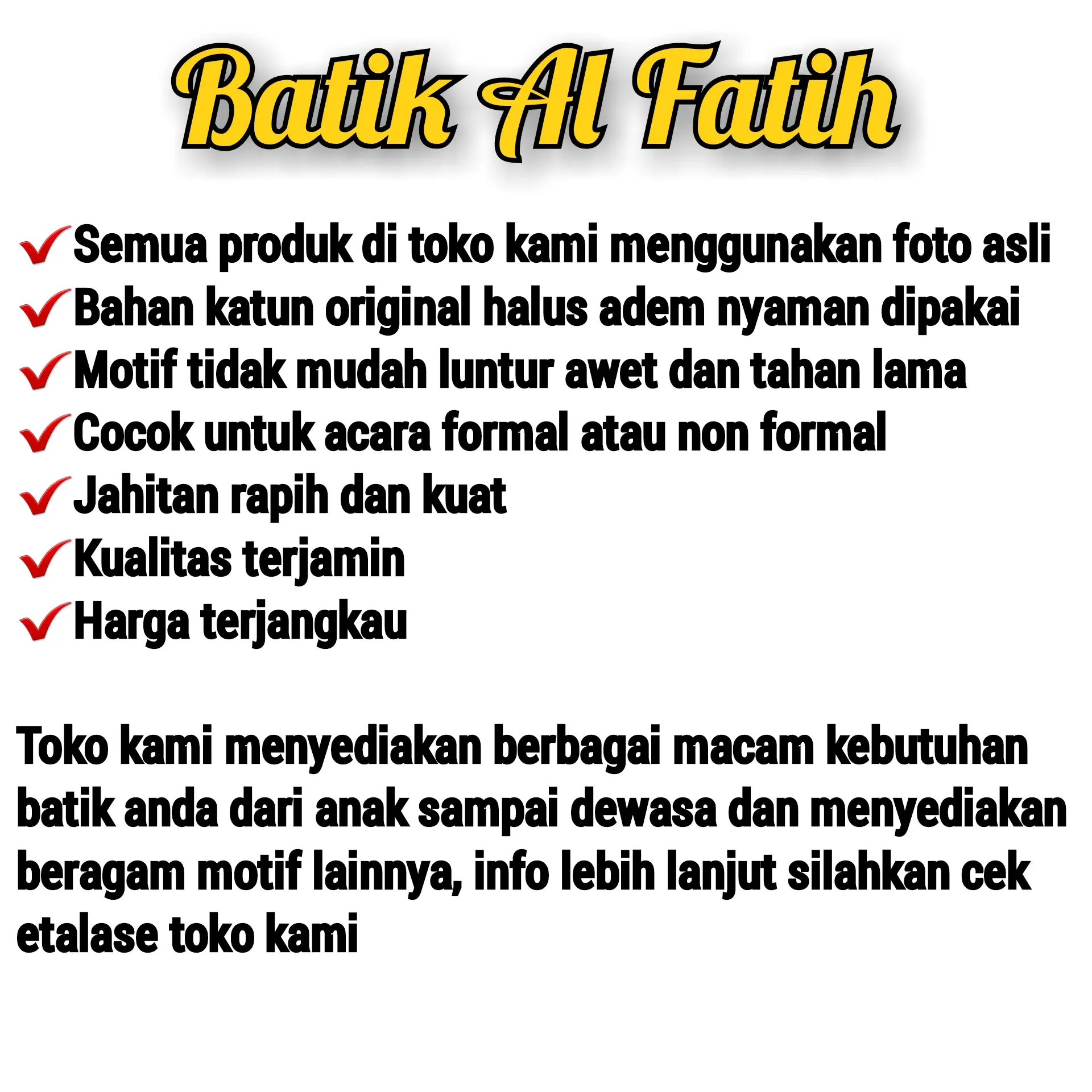 Menerima pesanan partai kecil dan besar. Dropship dan reseller welcome. Berbagai macam batik tersedia. Cek etalase toko kami. #batikanak #kemejabatikanak #bajubatikanakcowok #hembatikanak #grosirbatikanak