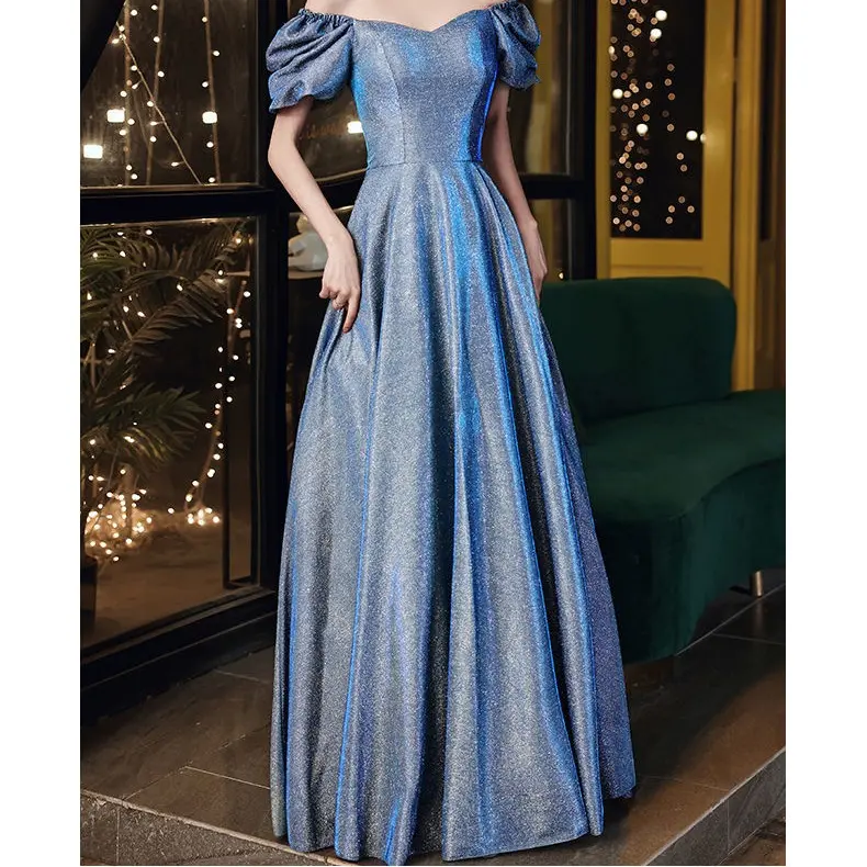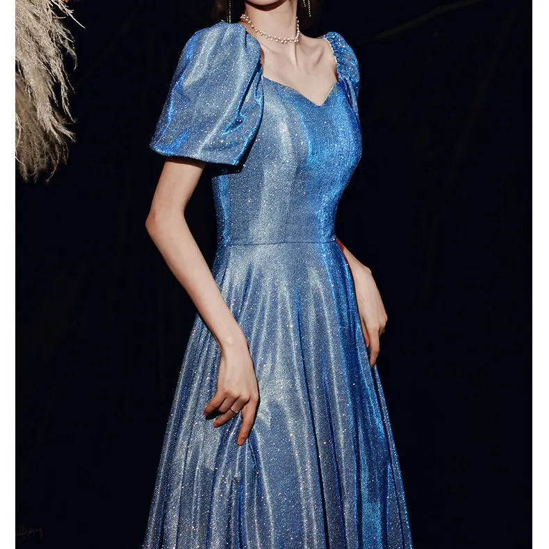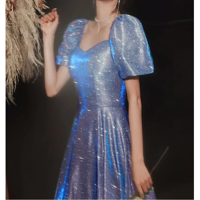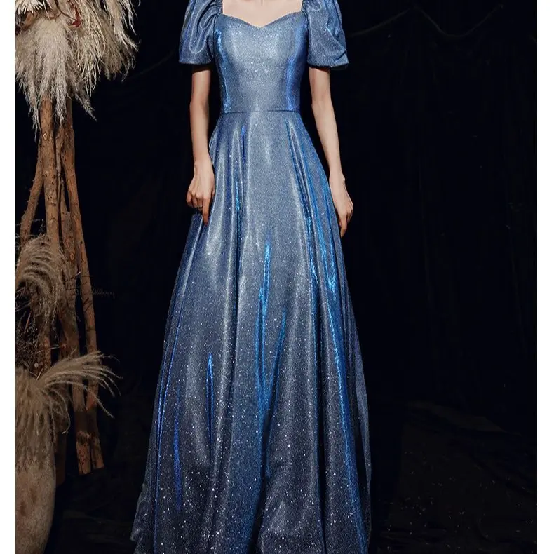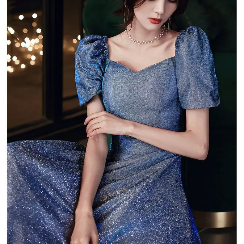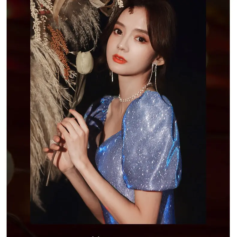 Star Evening Dress New Blue Long Sequin Bridesmaid Group Temperament Annual Meeting sisters Dress Host Party Dress 280#