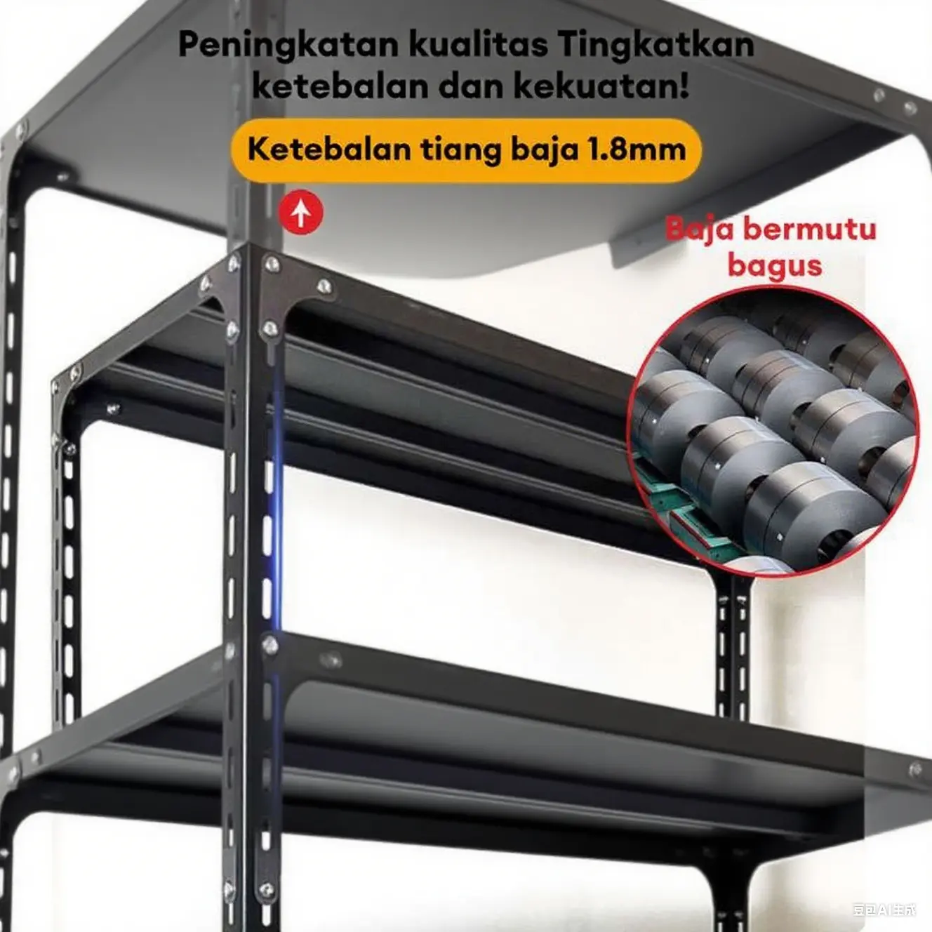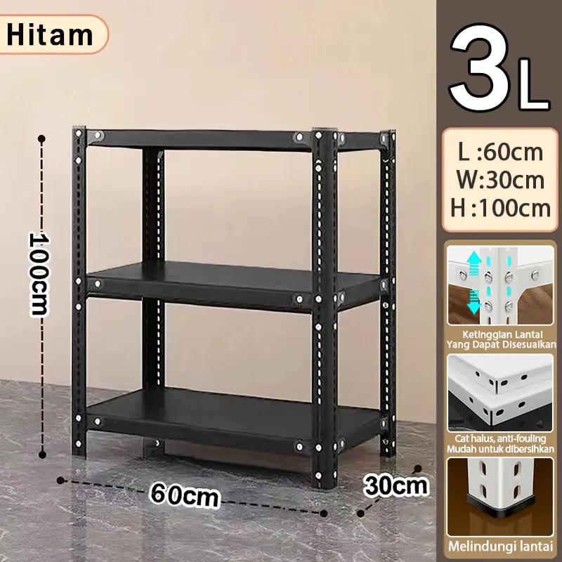Cat premium - Putih & Hitam. Ketebalan plat besi: 1,2 mm. Rak ini terbuat dari besi 100%. Tinggi yang bisa disesuaikan dengan 3/4/5/6 tingkat. Ketinggian setiap rak dapat disesuaikan untuk memenuhi kebutuhan Anda. Mudah dirakit dengan alat instalasi gratis dan instruksi profesional.