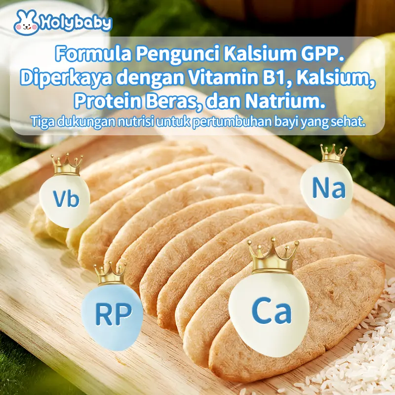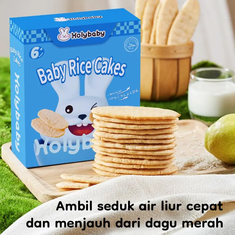 Holybaby Baby Teething Rice Cracker BergiziLezat Tidak Digoreng Sehat Tekstur Renyah Camilan Bayi Siap Makan 6 Bulan+ Halal Kaya Kalsium Zat Besi Zinc