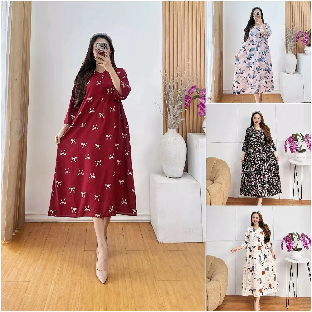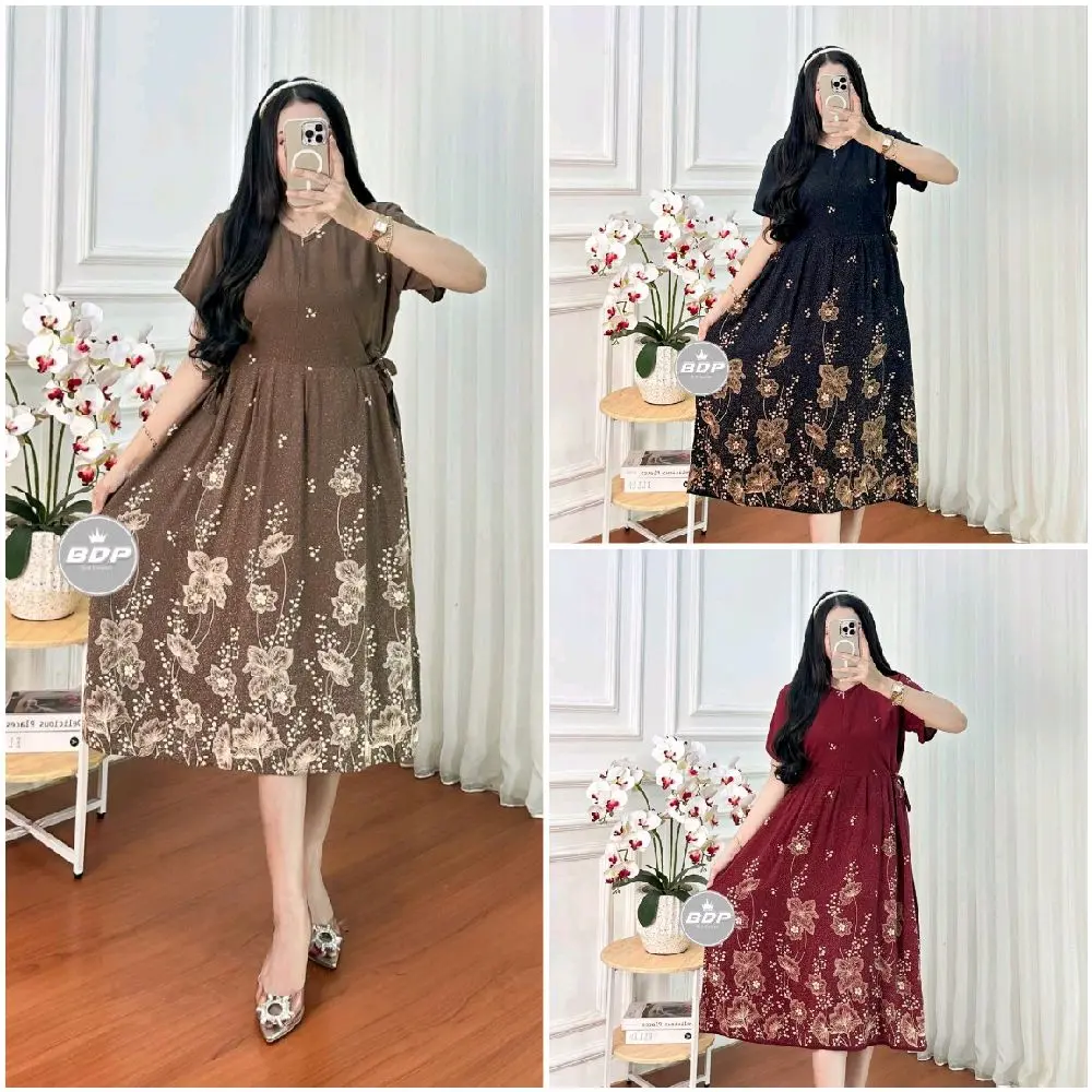 5. kangen batik • Dress cherry viral Bahan rayon premium super halus lembut adem dan jatuh busui resleting depan tali samping daster abg remaja wanita Nyaman