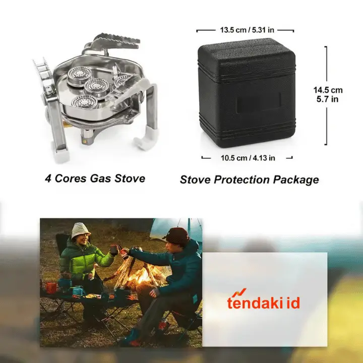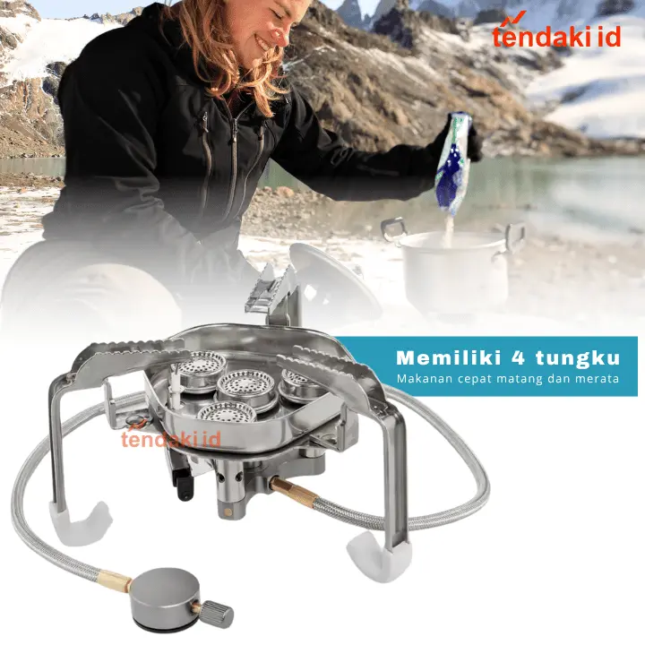 5. Taffsport Kompor Camping Gas Lipat 4 Tungku Ultralight Outdoor Stove Portable Anti Angin Gunung