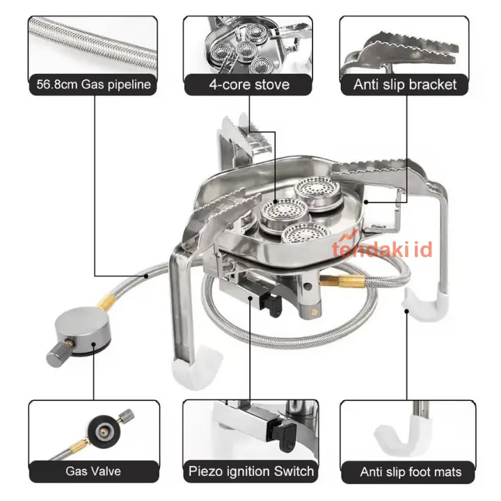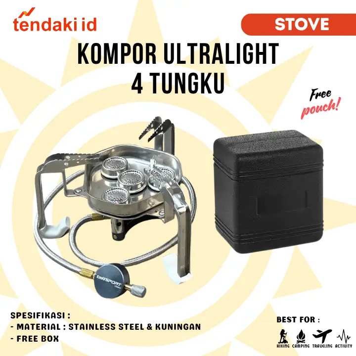 Taffsport Kompor Camping Gas Lipat 4 Tungku Ultralight Outdoor Stove Portable Anti Angin Gunung