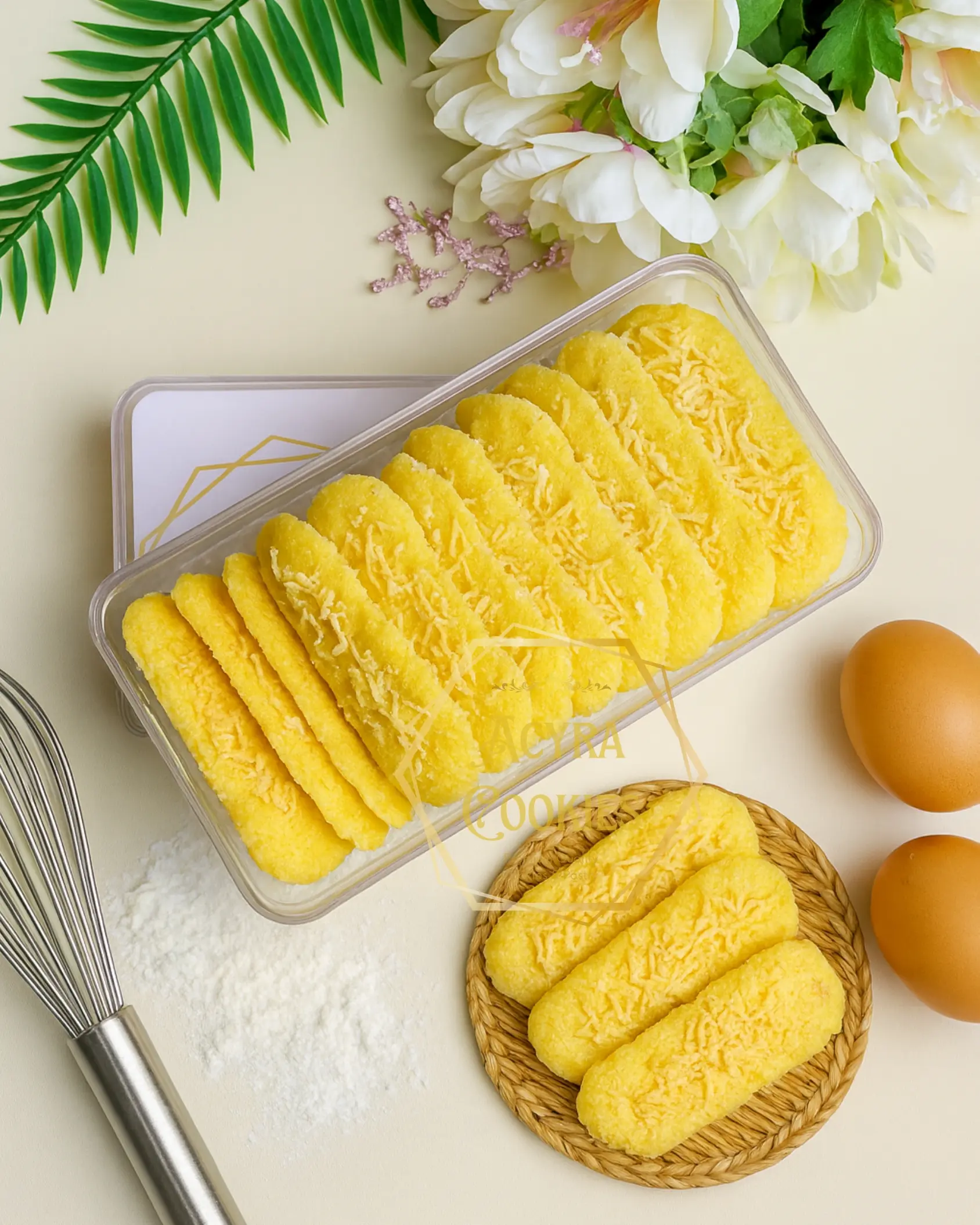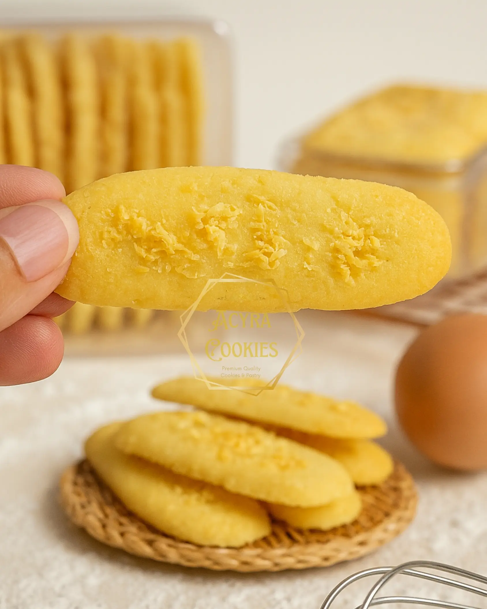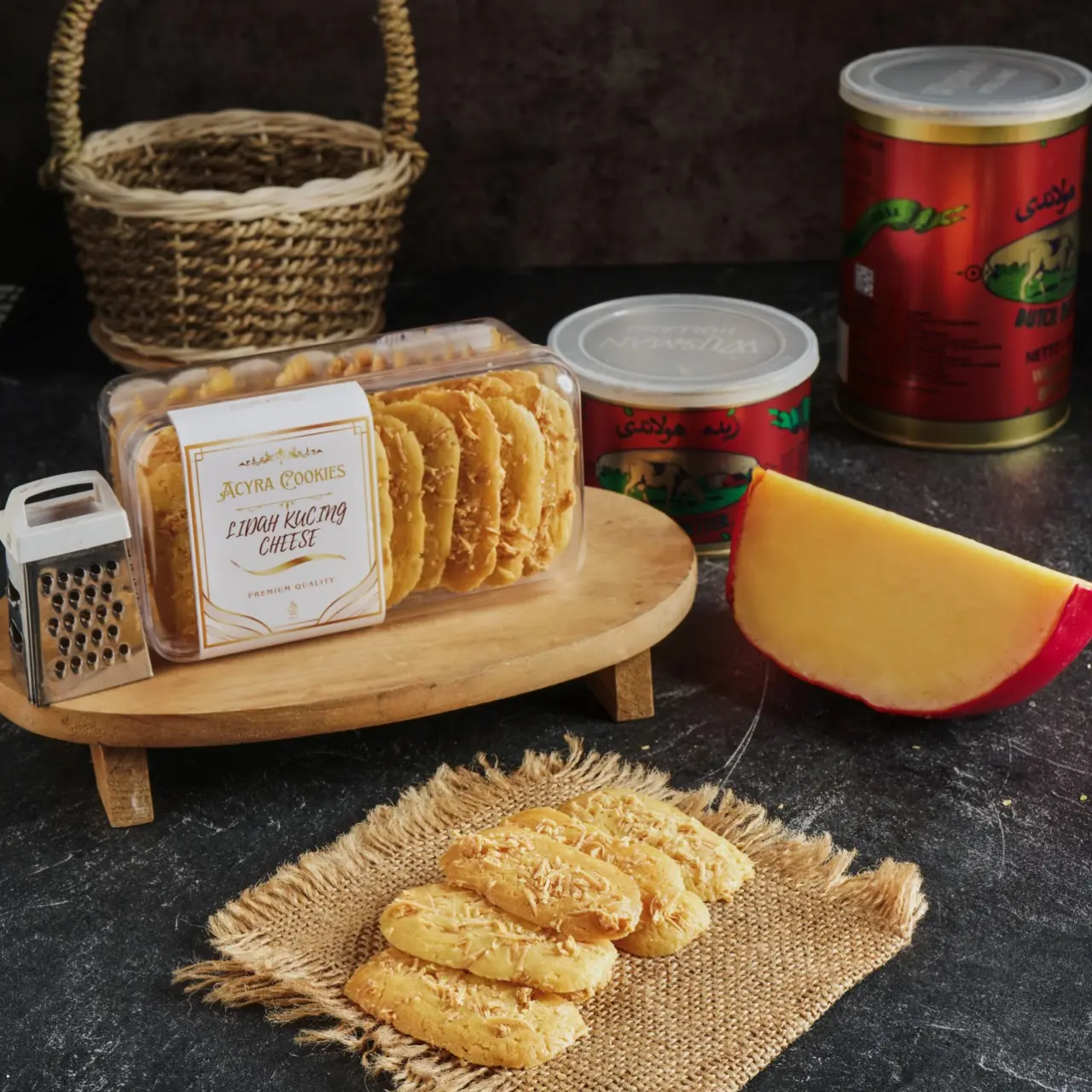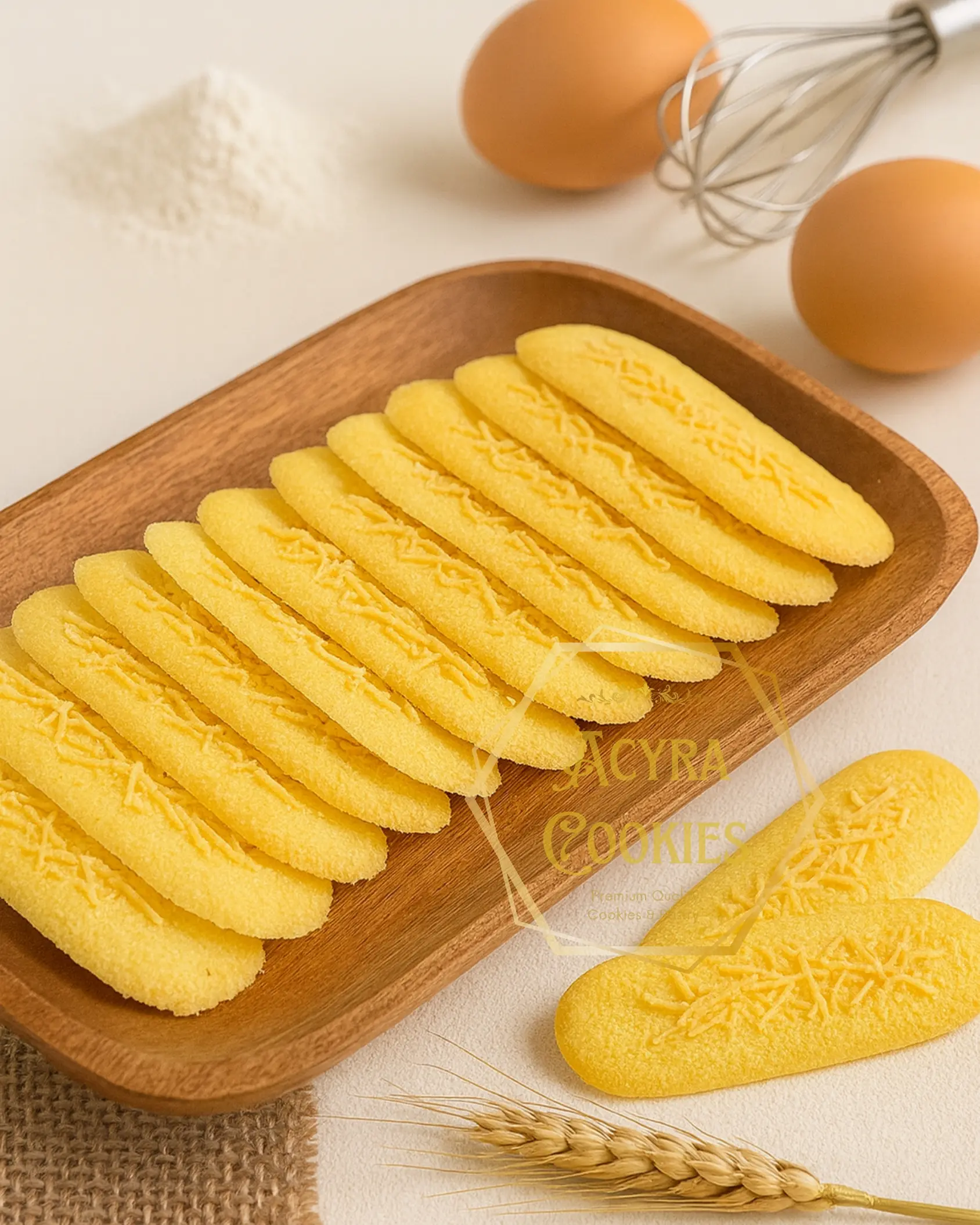 Lidah Kucing Keju Premium by Acyra Cookies adalah pilihan sempurna bagi Anda pecinta kue kering yang renyah, wangi, dan kaya rasa. Dibuat dari bahan-bahan berkualitas seperti butter pilihan, telur segar, tepung premium, dan taburan keju melimpah, menghasilkan lidah kucing dengan tekstur tipis crunchy dan aroma keju yang gurih menggoda.