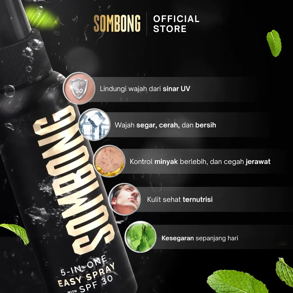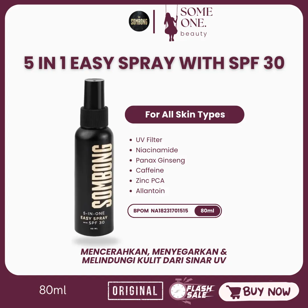 READY STOCK SIAP KIRIM! SOMBONG 5-IN-ONE EASY SPRAY WITH SPF 30 & FACE WASH