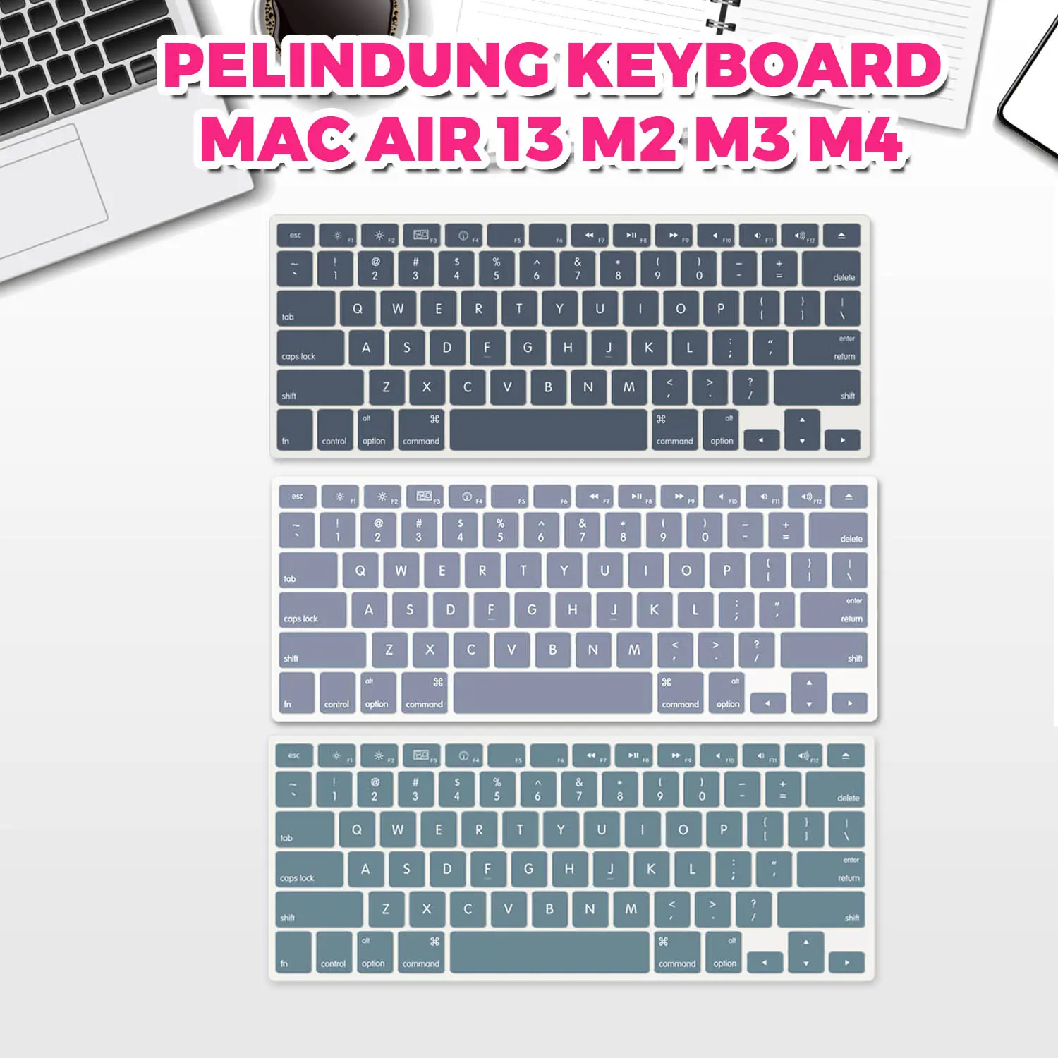 Pelindung ini hadir dalam warna abu-abu. Cocok untuk berbagai model Mac Air 13 Inci. Tambahkan perlindungan ekstra untuk keyboard laptop Anda. 🖥️