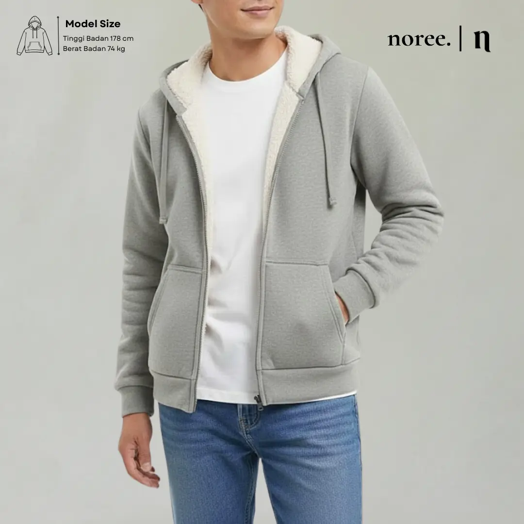 5. Noree Sherpa Fit Hoodie Zipper Cotton Fleace Sherpa Full Bulu | Abu Misty
