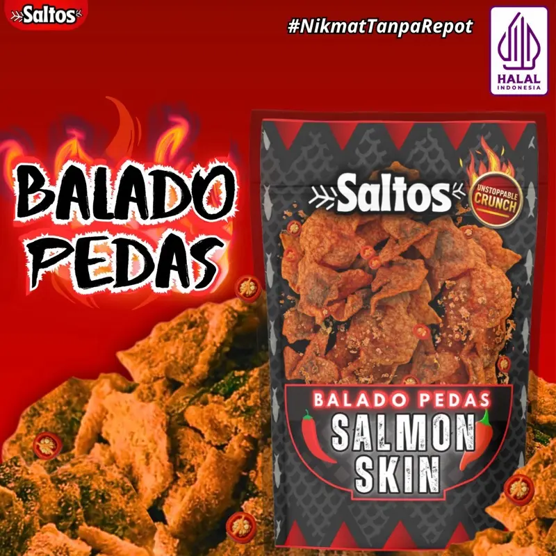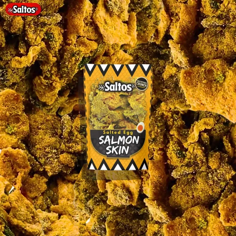 Saltos adalah camilan kulit ikan salmon pilihan, digoreng hingga super kriuk.