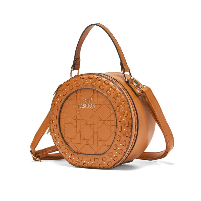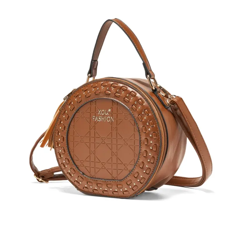 5. XOU Fashion Tas Selempang Wanita Model Bulat X-720 Desain Rivet Elegan Tali Bahu Nyaman Cocok untuk Sehari-hari