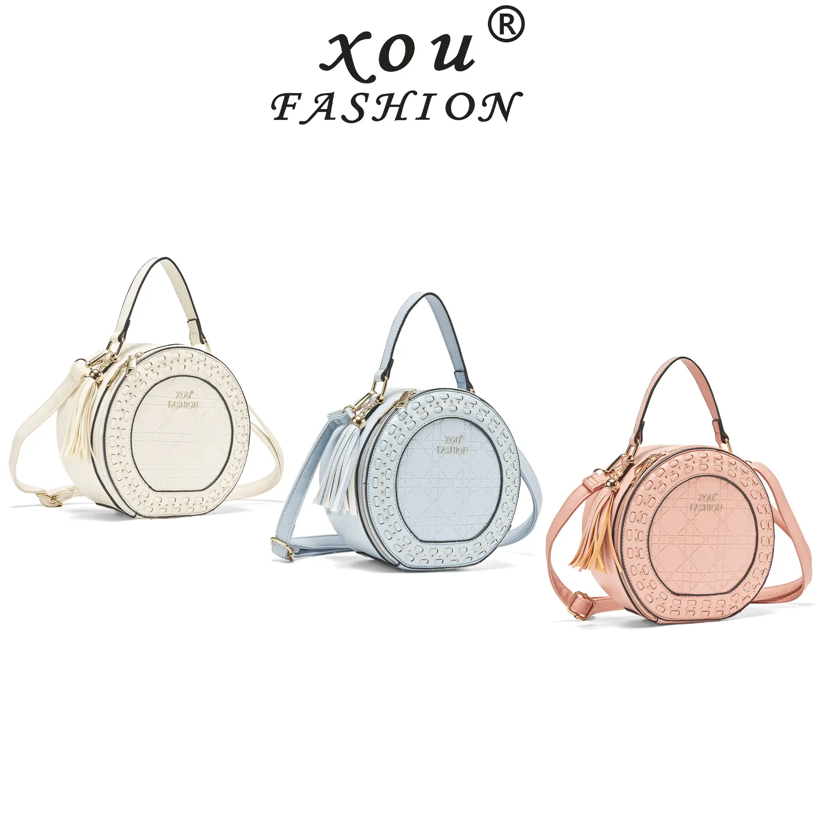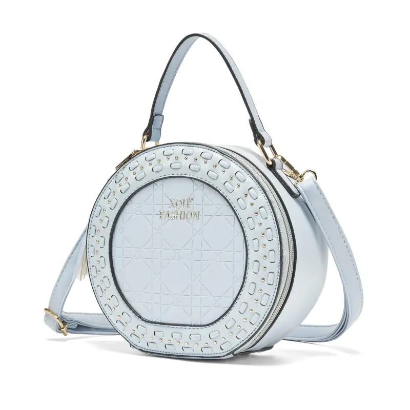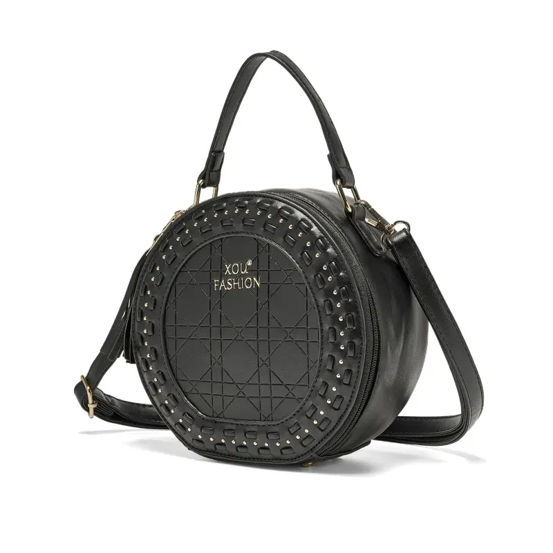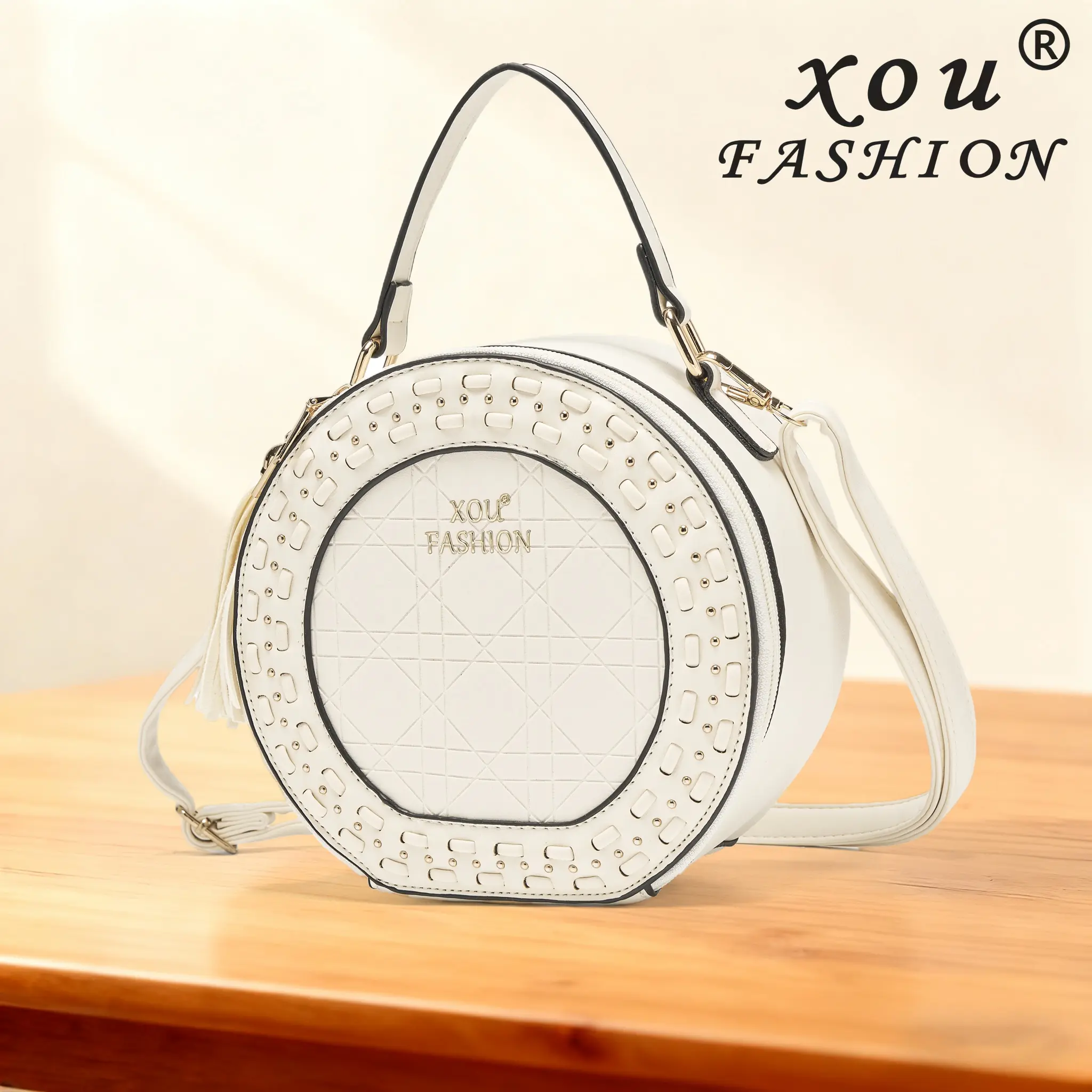 XOU Fashion Tas Selempang Wanita Model Bulat X-720 Desain Rivet Elegan Tali Bahu Nyaman Cocok untuk Sehari-hari