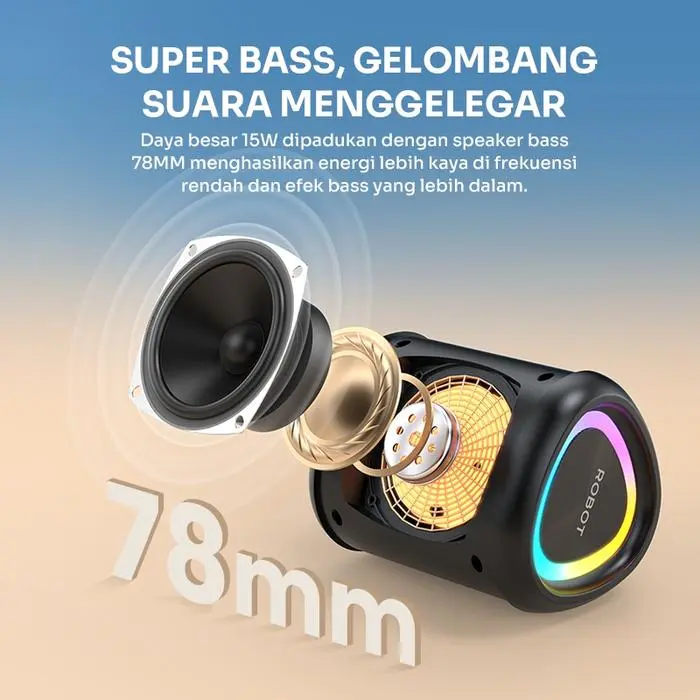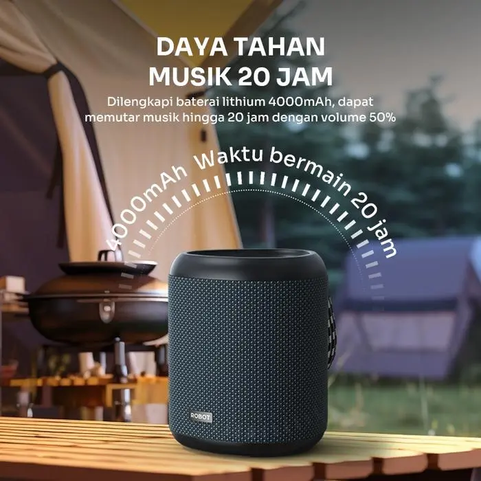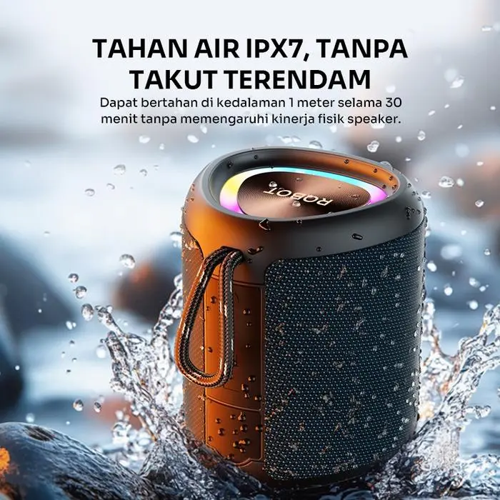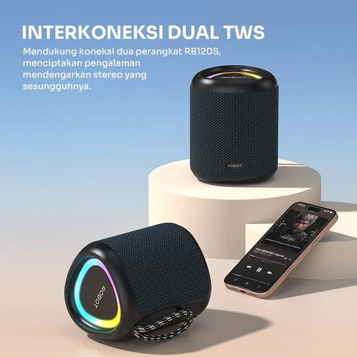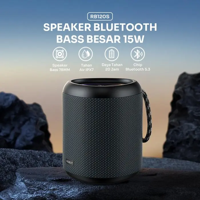 Nikmati audio powerfull dengan ROBOT RB120S, speaker portabel premium. Suara super bass, daya 15W, dan ketahanan air level IPX7. Cocok untuk outdoor, kamar, gym, camping, hingga pesta kecil bersama teman!