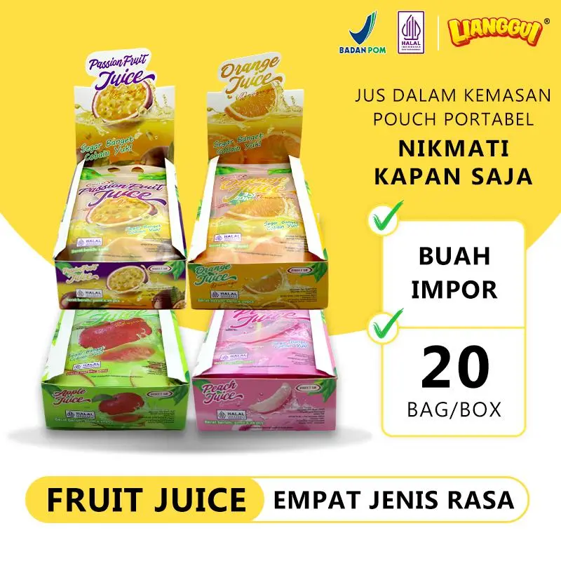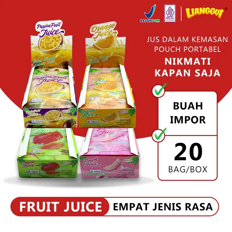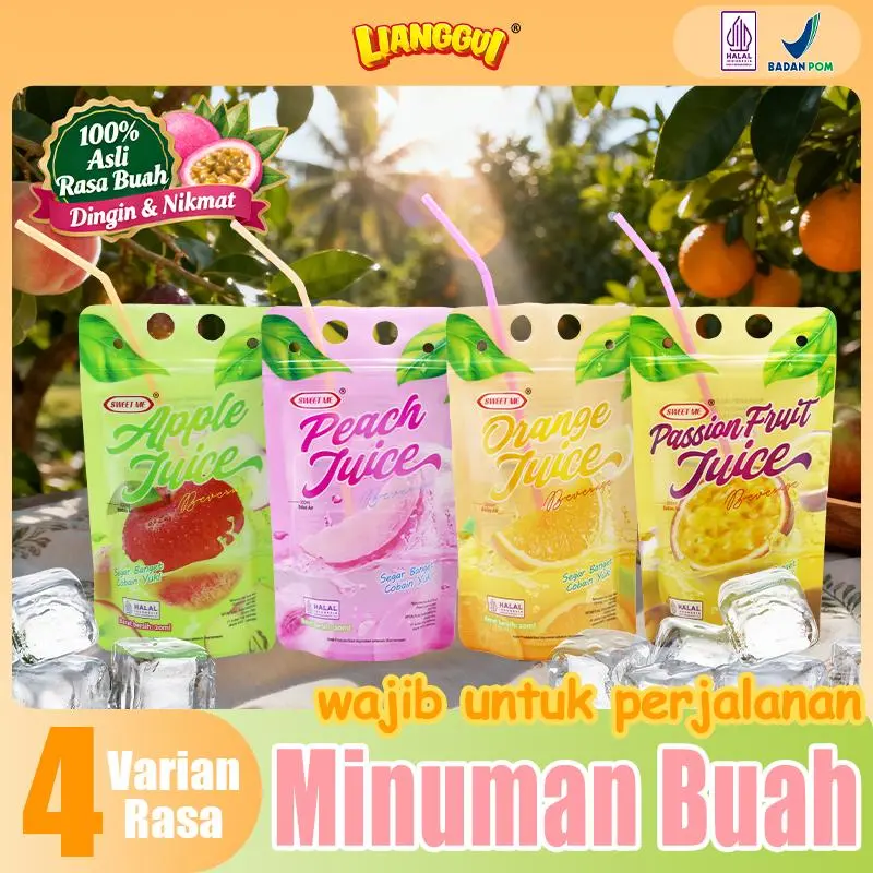 【HALAL】LIANGGUIG Jus Buah Praktis (Persik + Markisa + Jeruk + Apel), Cocok untuk Memenuhi Cairan Tubuh Sehari-hari/Berlibur atau Piknik/Menyegarkan minum di Kantor, Minuman Campuran Rasa Buah Praktis, Terbuat dari 4 jenis buah segar