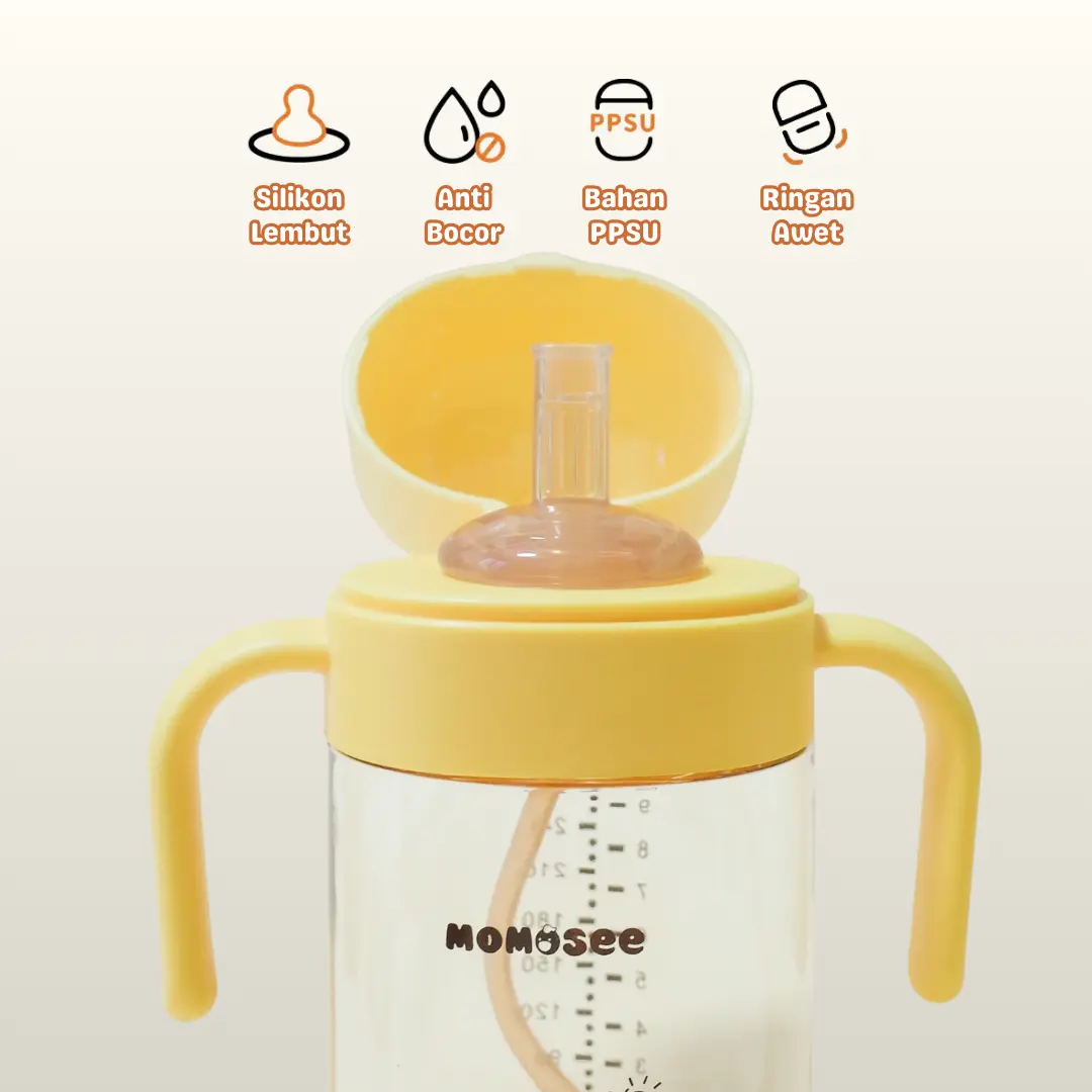 Botol Dot Straw ini pilihan tepat untuk si kecil yang aktif! Bahan botol PPSU BPA Free dan didesain Flip Cover agar selalu bersih dan higienis! Pegangan botol ergonomis agar si kecil belajar minum sendiri, dan dapat diminum sambil rebahan karena dilengkapi gravity ball loh!