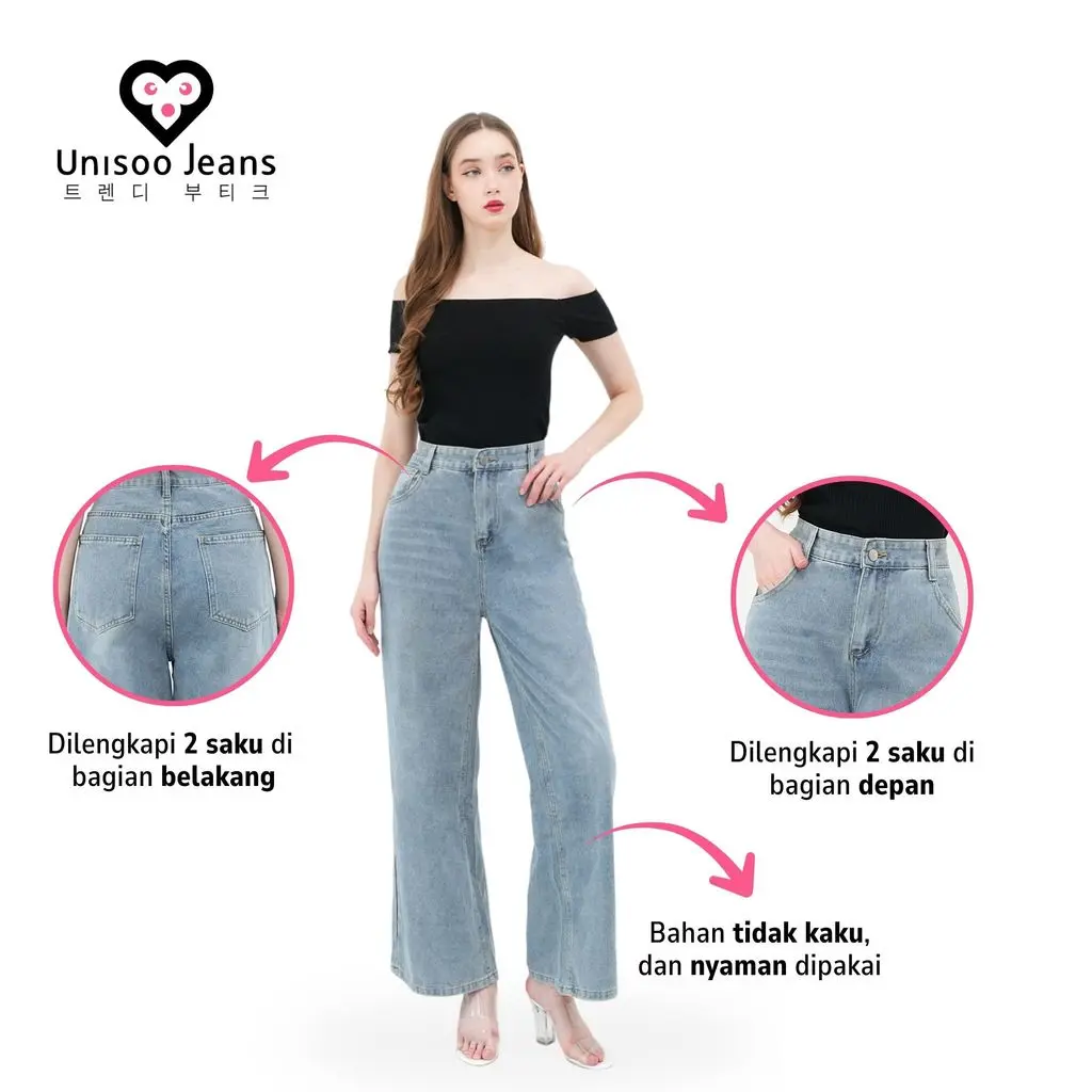 UNISOO JEANS, solusi celana jeans wanita dengan model highwaist, bahan , dan desain kulot/baggy yang hits!