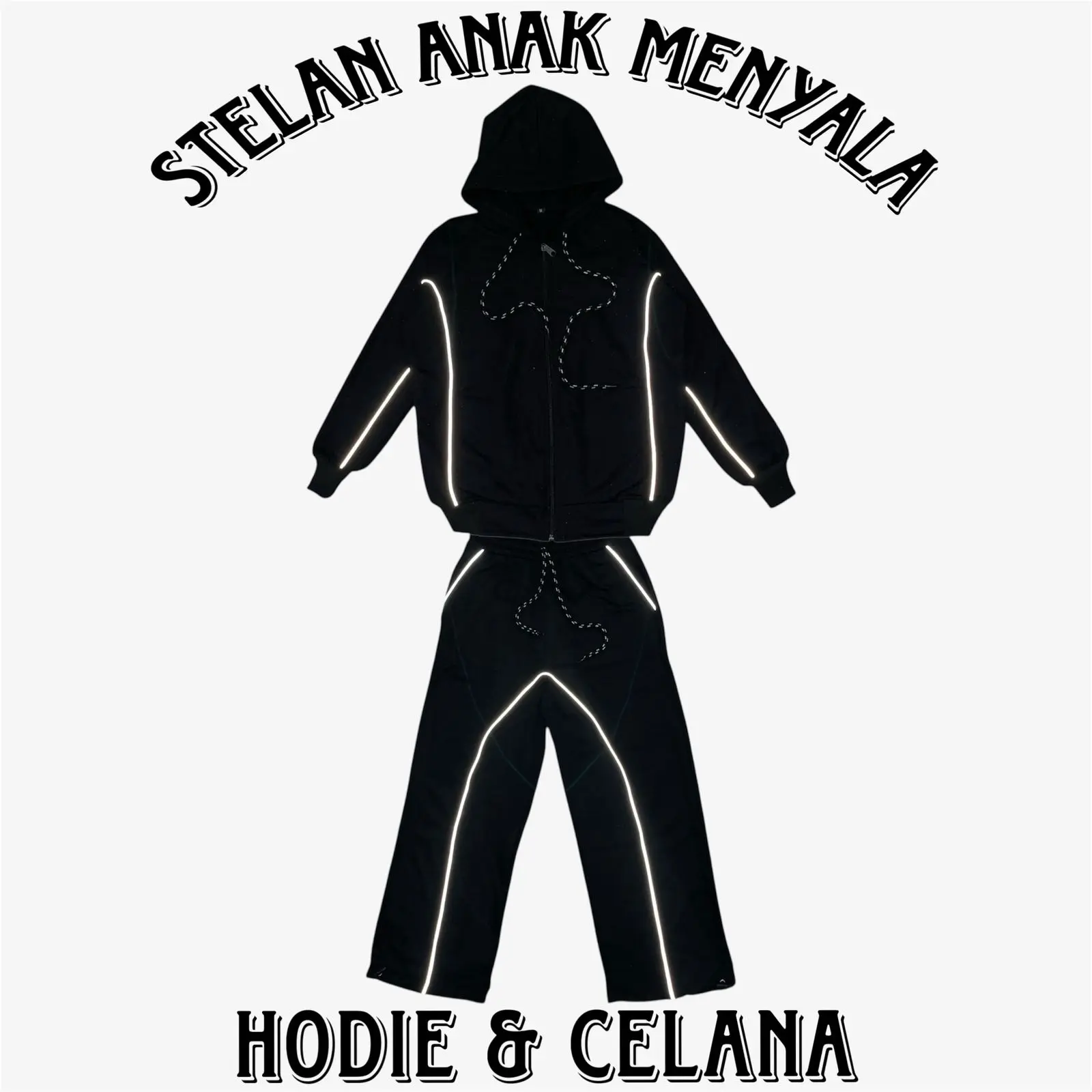 Setelan anak ini terdiri dari hoodie reflective dan celana panjang. Cocok untuk anak berumur 4 - 15 tahun. Desain hoodie reflective memberikan tampilan yang menarik dan aman. Celana panjang menambah kenyamanan anak saat beraktivitas.