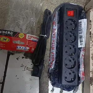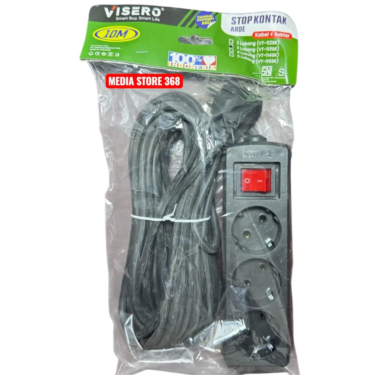 VISERO Stop Kontak/Terminal 5 Lubang Body HITAM Kabel 10M dengan Switch On/Off SNI
