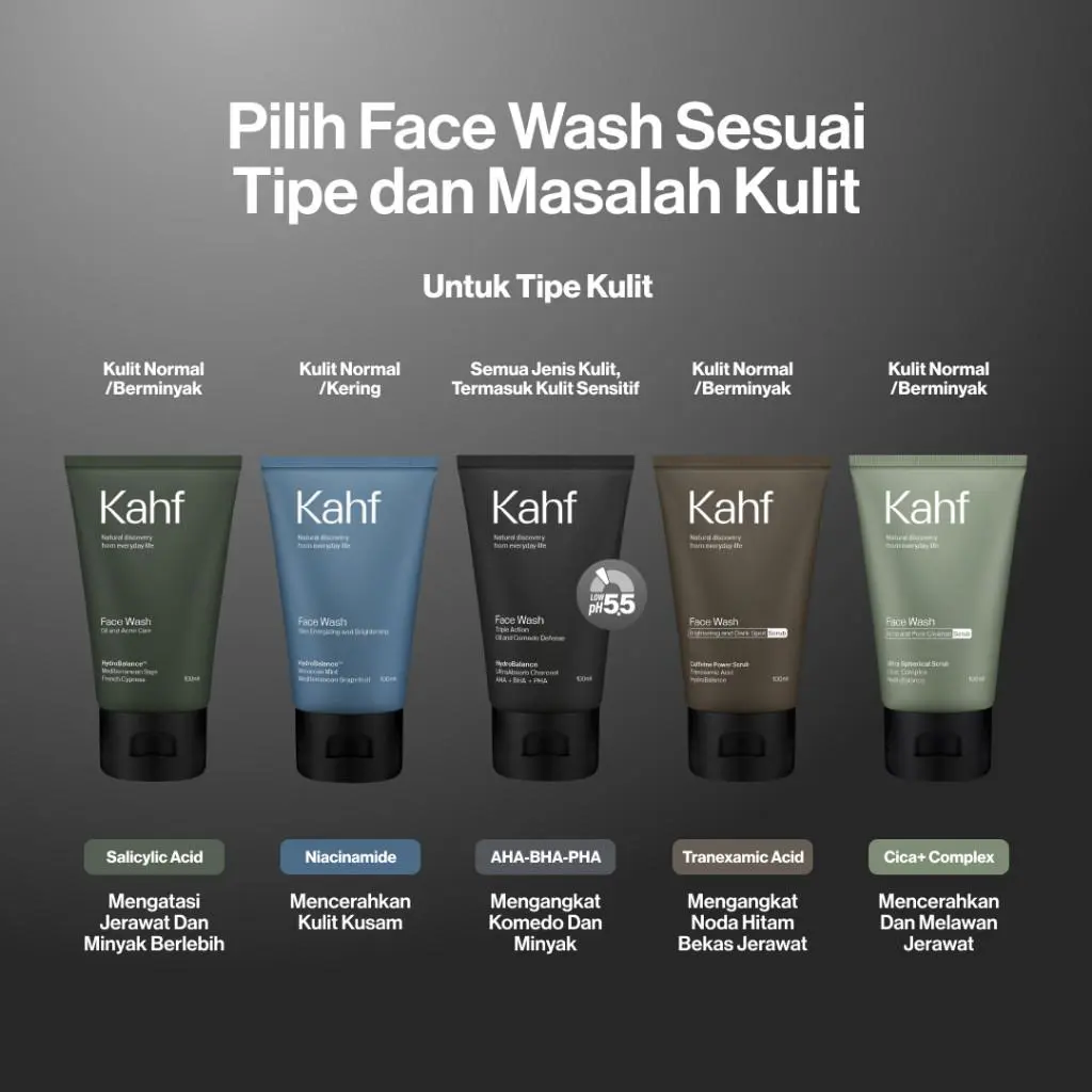 Paket ini berisi Kahf Triple Action Oil and Comedo Defense Face Wash 100 ml x 3 pcs