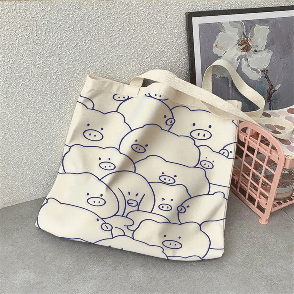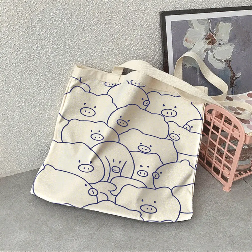 ✨ Tas kanvas dengan pola babi gemuk, memberikan nuansa casual yang cocok untuk berbagai gaya. Cocok untuk pakaian sehari-hari, tampilan seni, seragam sekolah, dan gaya jalanan. 🐷
