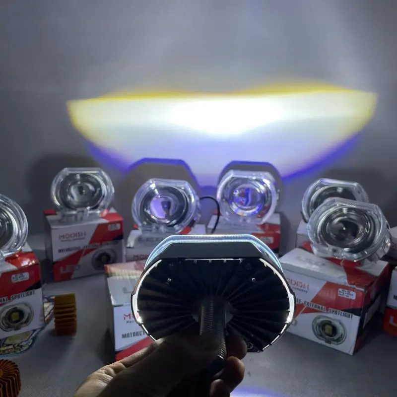 ·Harga Satuan!Lampu projie biled 2.5 inch anti air, COCOK UNTUK SEMUA JENIS CUACA! Sinar dekat putih & jauh kuning, ditambah sinar gabung SUPER LEBAR, PEKAT & TERANG—jaminan sorot terang untuk berkendara malam!