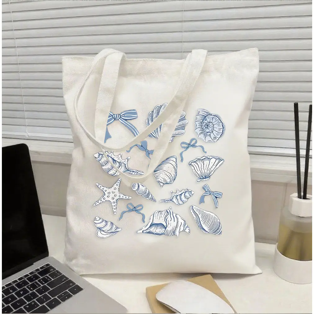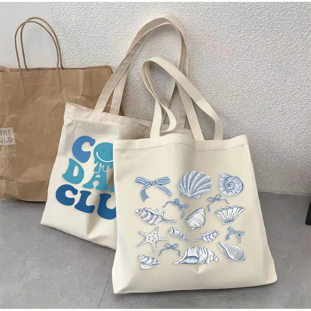 5. Tas Kanvas Pola Wajah Senyum Biru Kokoh Tahan Lama Bernapas Ukuran 30cm x 40cm Tas Kain Bahan Substansial Tanpa Tebal
