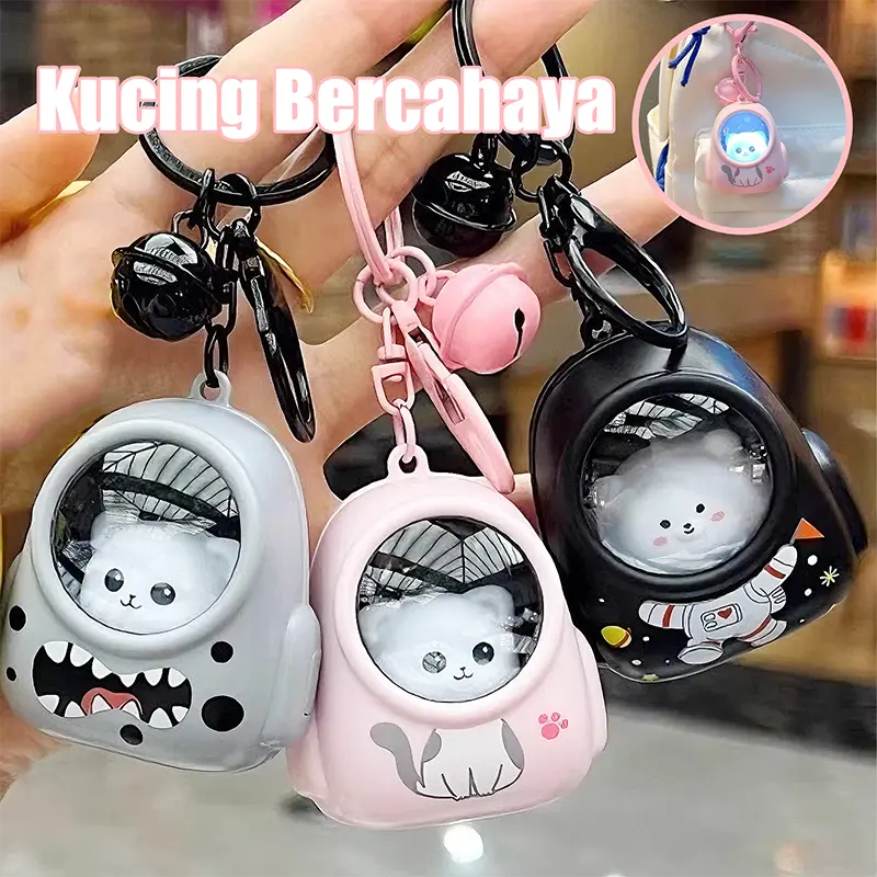 Gantungan Tas 3D Gantungan Kunci Led Ada Lampu Cute Cat Astronot Premium Keychain Liquid Akrilik Gantungan Tas Gantungan Kunci Gantungan Mobil Motor Serbaguna Karakter Lucu