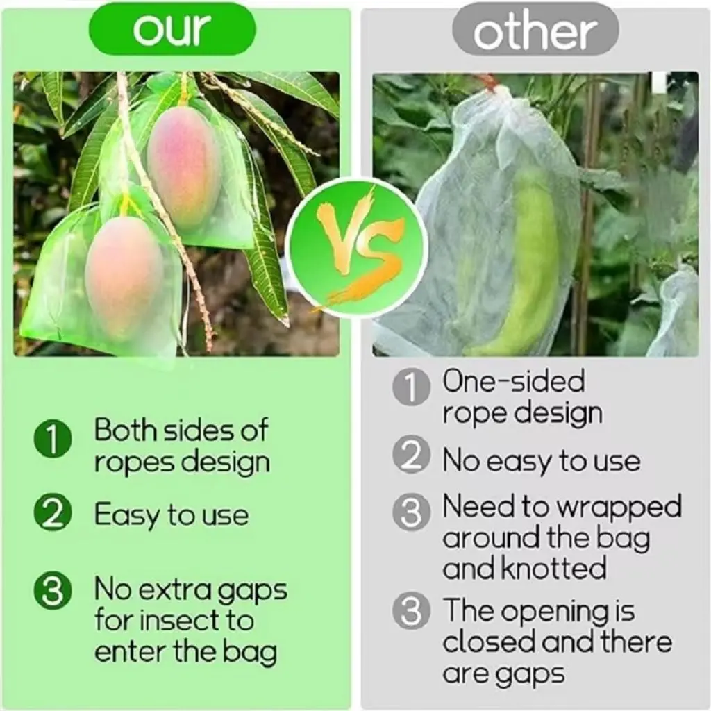 ·Anti Hama & Serangga: Melindungi buah secara efektif dari lalat buah, kutu, ulat, semut, lebah, tawon, burung kecil, dan gigitan nyamuk.