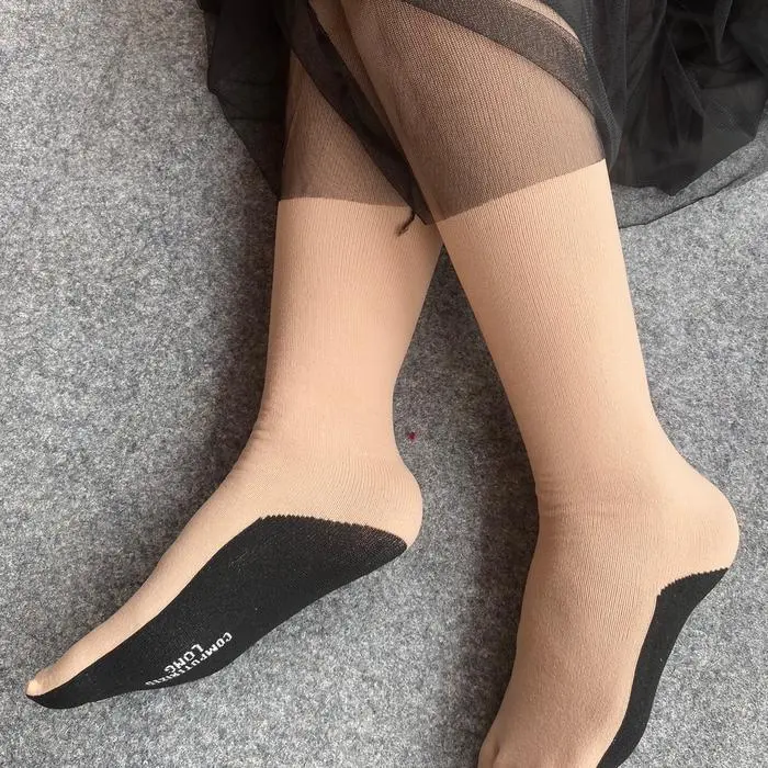 (Paket 1 Lusin) 12 Pasang Kaos Kaki Jempol Muslimah Warna Cream telapak Hitam Tanpa Kemas