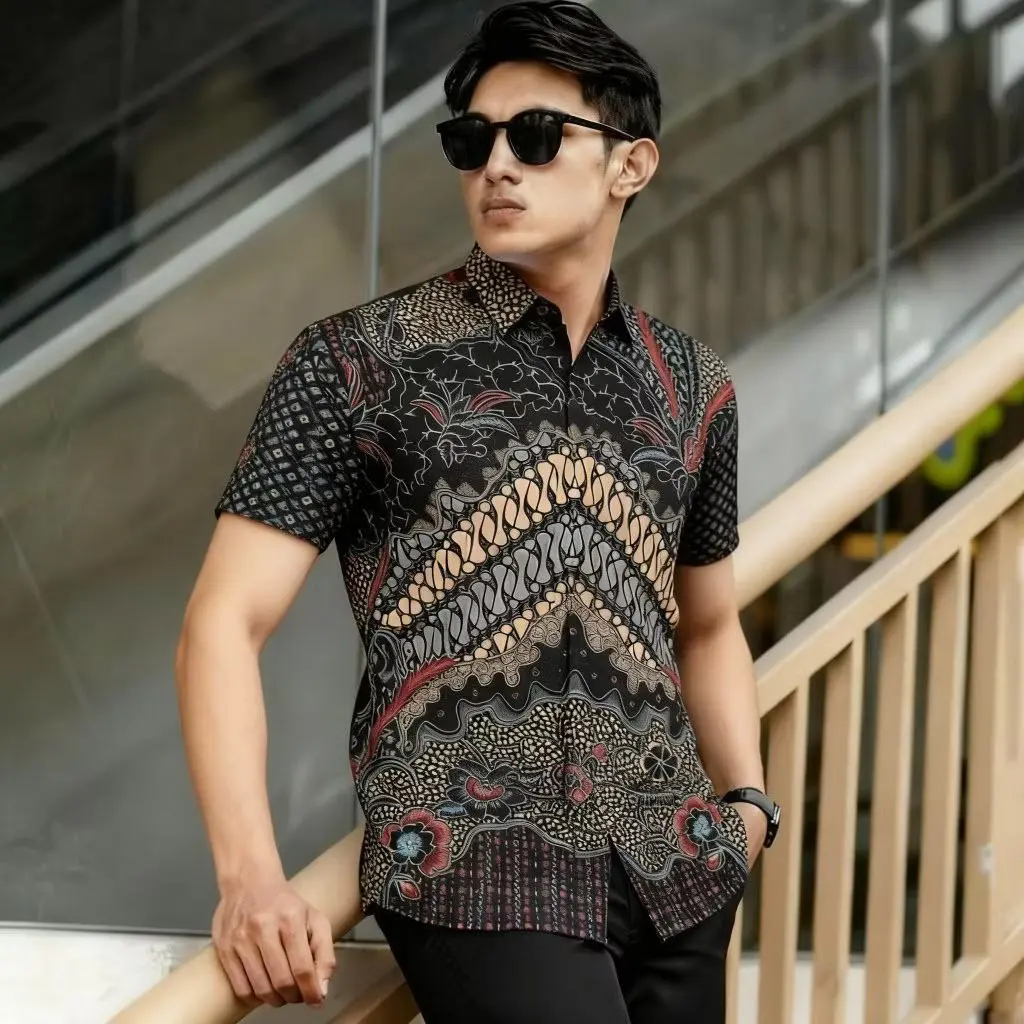 ·Baju batik pria dengan desain hem batik lengan pendek. Cocok untuk tampilan yang modern dan elegan. 🌟