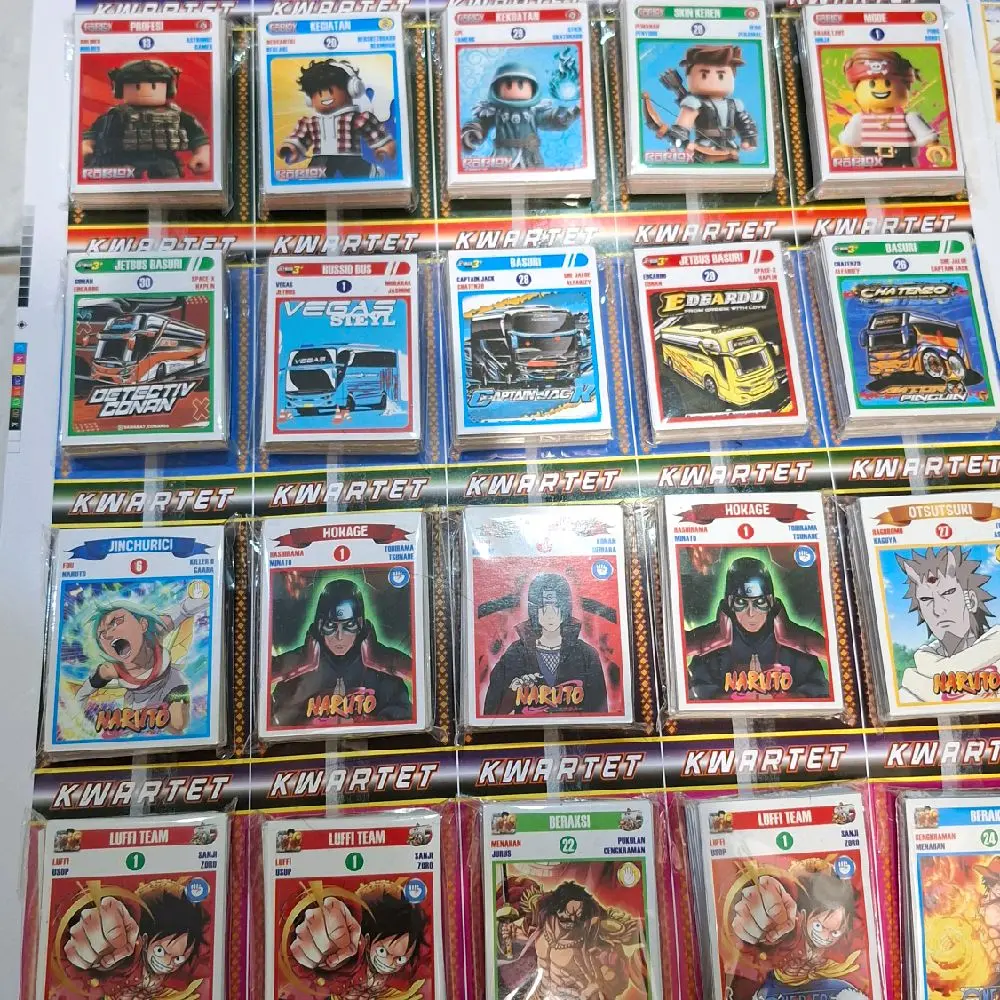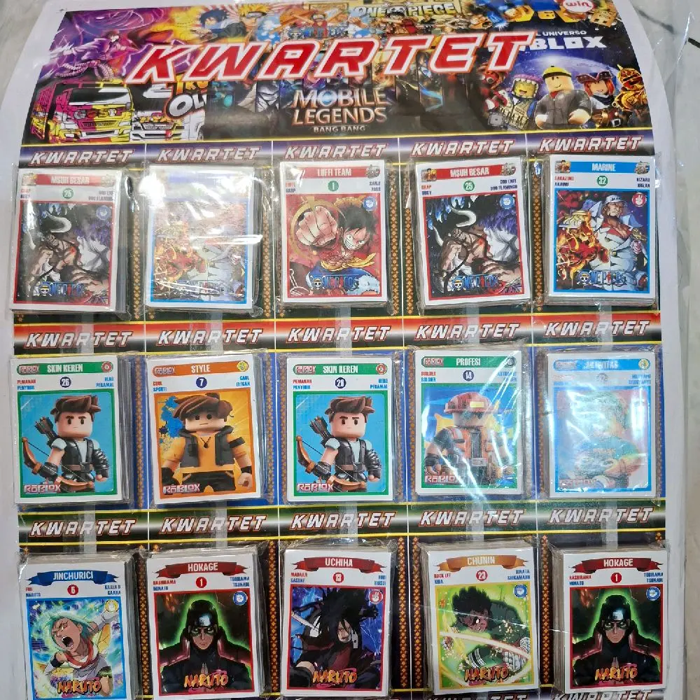 * Kartu kwartet kartu tepuk viral dengan berbagai gambar karakter.