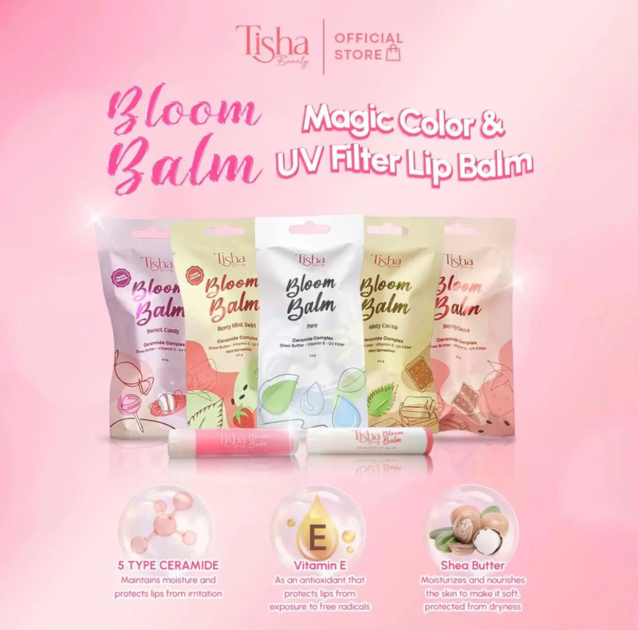 ·Perlindungan Bibir: Tisha Beauty Bloom Balm Berry Cocoa dilengkapi dengan UV Filter untuk melindungi bibir Anda dari sinar UV. 🌞