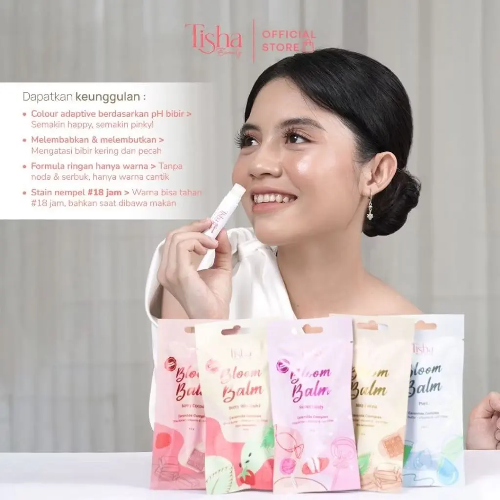 5. Tisha Beauty Bloom Balm Berry Cocoa – Lip Balm Magic Color & UV Filter untuk Melindungi Bibir dan Meningkatkan Warna Bibir