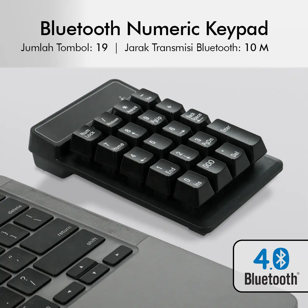Bekerja dengan angka kini jadi lebih praktis dan nyaman menggunakan keyboard numerik yang satu ini! Keyboard numerik ini hadir untuk Anda yang sering mengolah data atau mengetik angka dalam jumlah banyak. Tanpa kabel yang mengganggu, numpad ini menggunakan koneksi Bluetooth 4.0 yang stabil dan cepat. Cukup gunakan satu baterai AAA, dan Anda bisa menikmati kemudahan mengetik angka kapan pun dan di mana pun. Ringan, portabel, dan siap mendukung produktivitas Anda setiap hari.