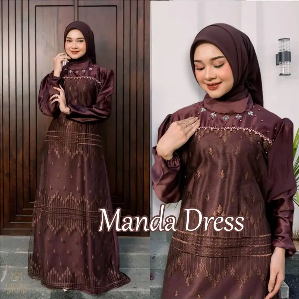 Manda Dress Baju Lebaran 2026 Brokat Satin Silk Premium Payet Mutiara Maxi Gamis Muslim Wanita Dewasa Gaun Pesta Kondangan Bridesmaid Mewah Simple Elegan Terbaru Model Kekinian