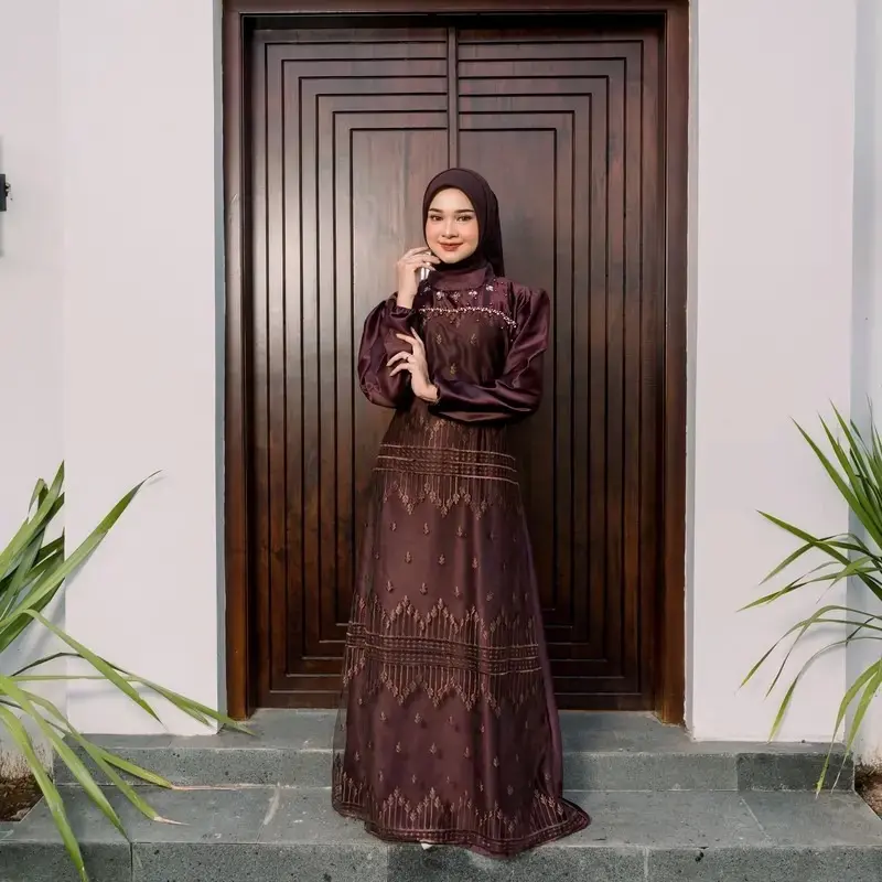 5. Manda Dress Baju Lebaran 2026 Brokat Satin Silk Premium Payet Mutiara Maxi Gamis Muslim Wanita Dewasa Gaun Pesta Kondangan Bridesmaid Mewah Simple Elegan Terbaru Model Kekinian