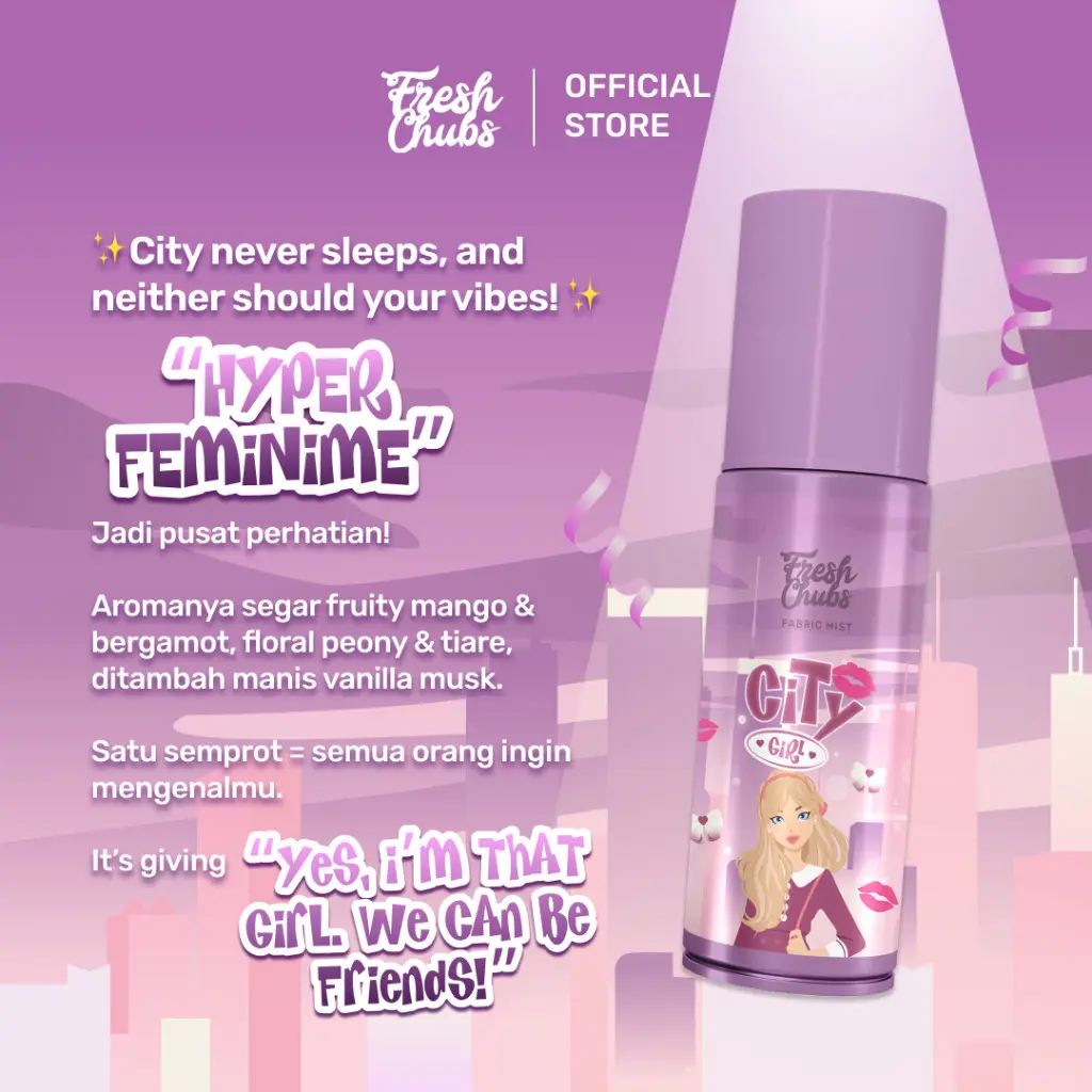 parfum special city girl " hyper feminime" it's giving "yes,i'm that girl. We can be friends!" .cocok banget buat kamu yang merasa ingin diri kamuu semakin percaya diri !